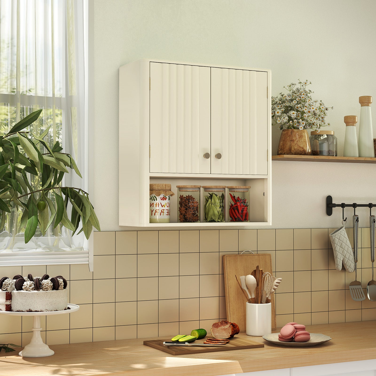 Fluted Bathroom Wall Cabinet with Open Shelf-Beige