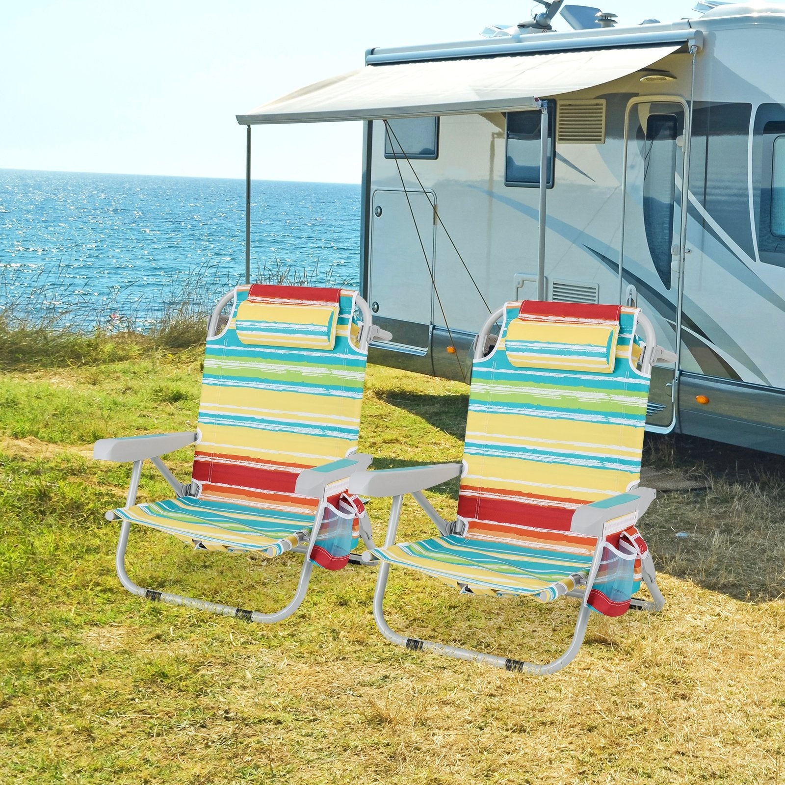 ● Wide Range of Application: Designed with a stylish striped pattern the portable beach chair will add a pop of style to your outdoor space making it a versatile choice for various outdoor activities such as camping fishing or picnicking.