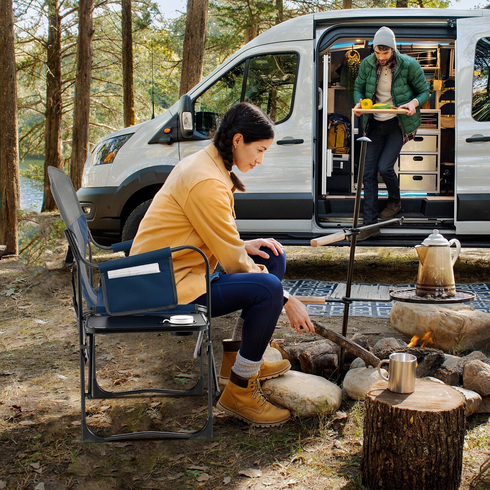 Folding Camping Directors Chair with Cooler Bag and Side Table-Black