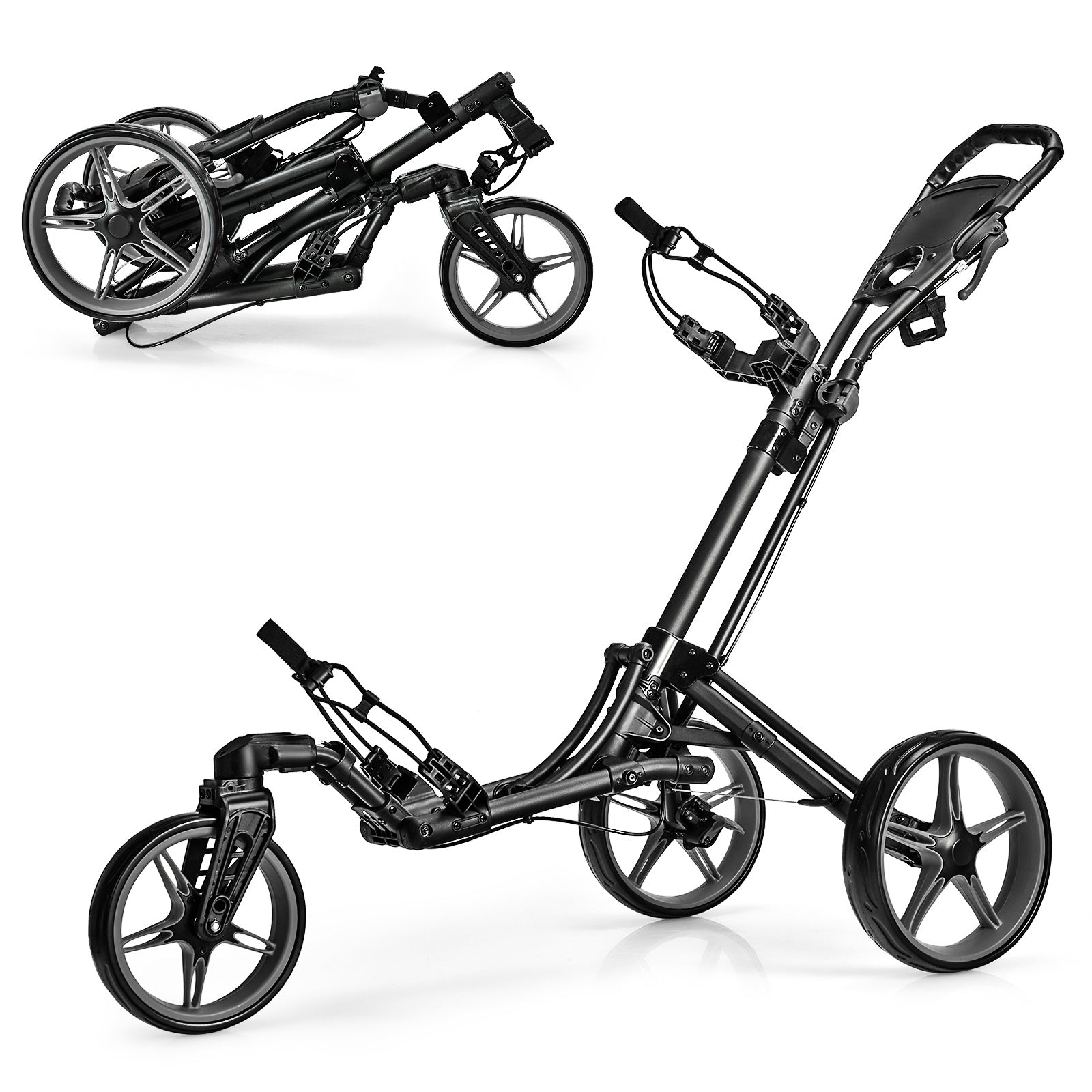 ● Considerate Details: This golf push cart features a cup holder let you have a place to prepare favorite drink. The built-in scorecard holder space can store your scorecard so that it is not crumpled. 3 removable wheels aim to assist quick disassembly for easy storage when not in use.