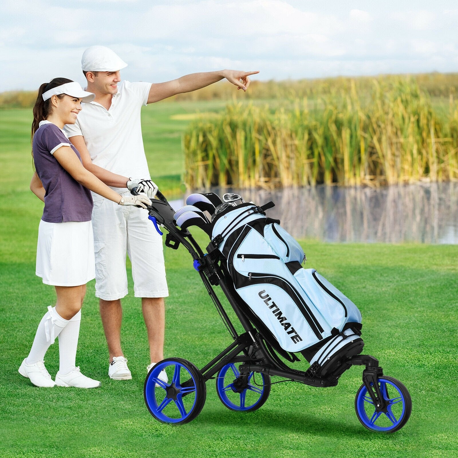 Folding Golf Push Cart with Scoreboard Adjustable Handle Swivel Wheel-Blue