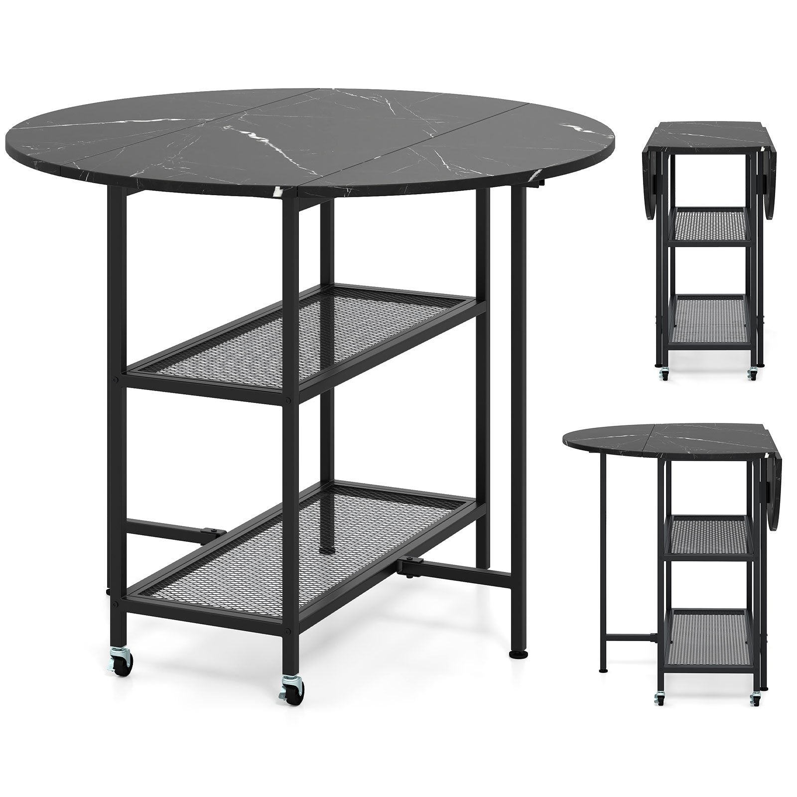 ● Ample Storage Space: Equipped with 2-tier metal mesh storage shelves this drop leaf dining table not only offers a sleek and modern look but also provides ample storage space keeping items organized and easily accessible.