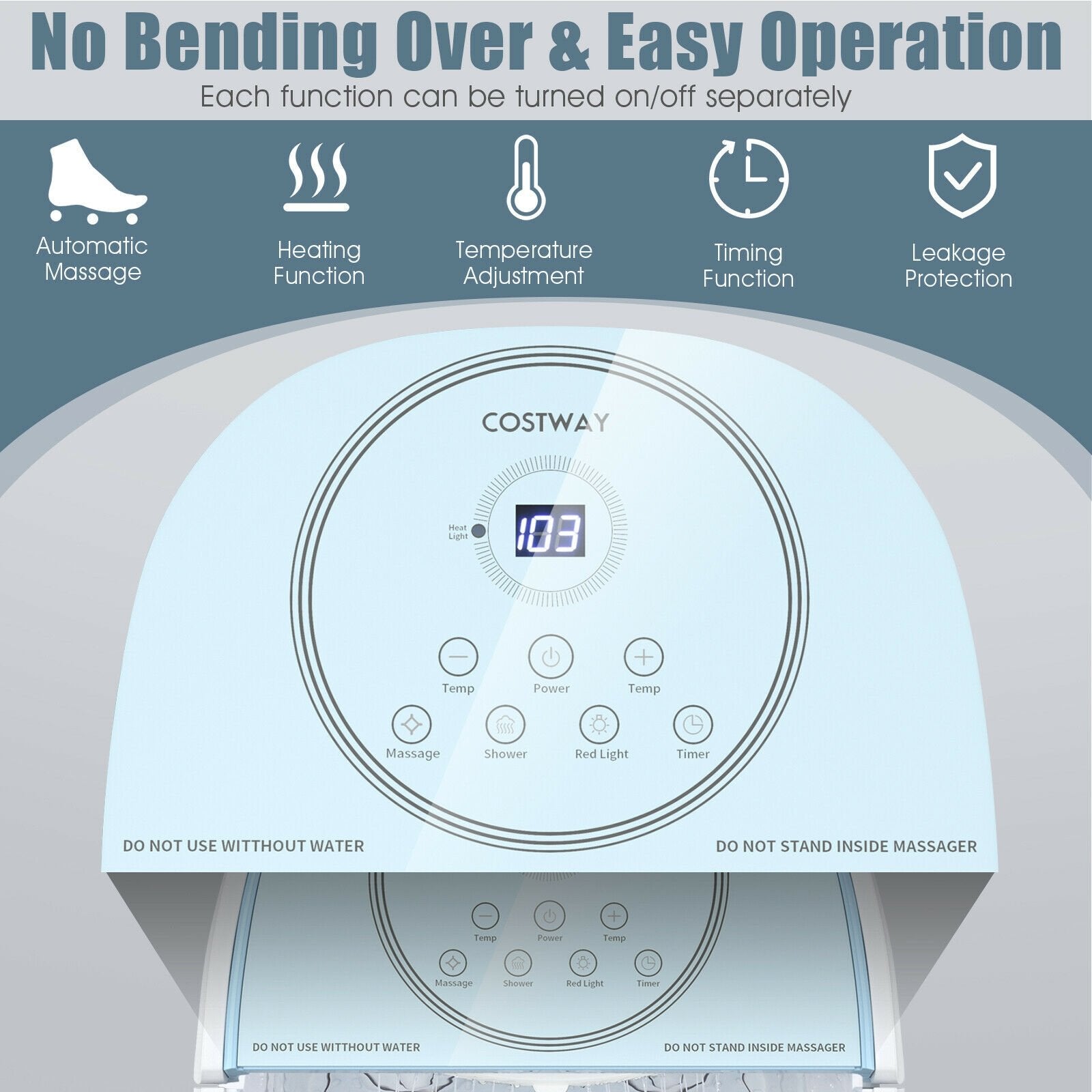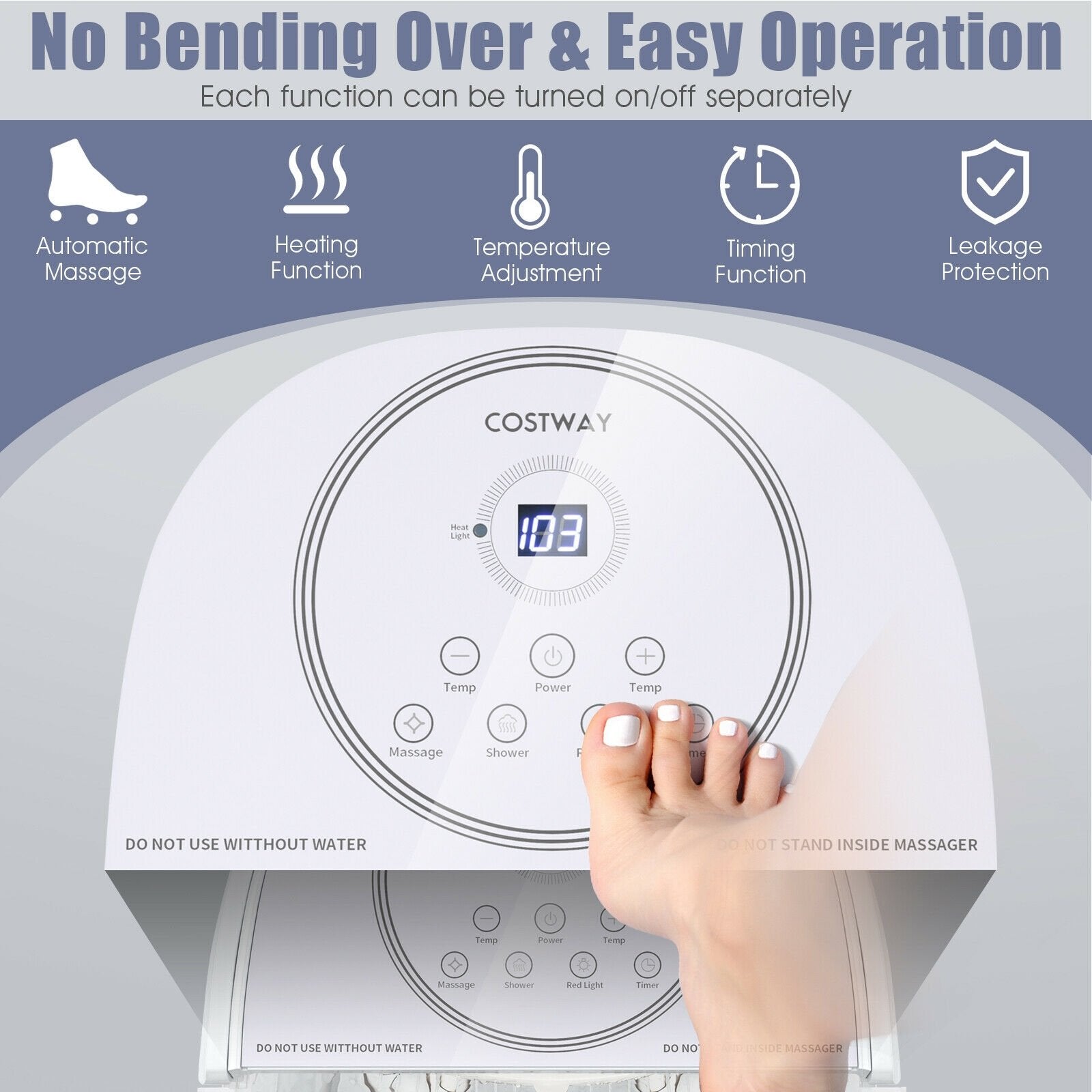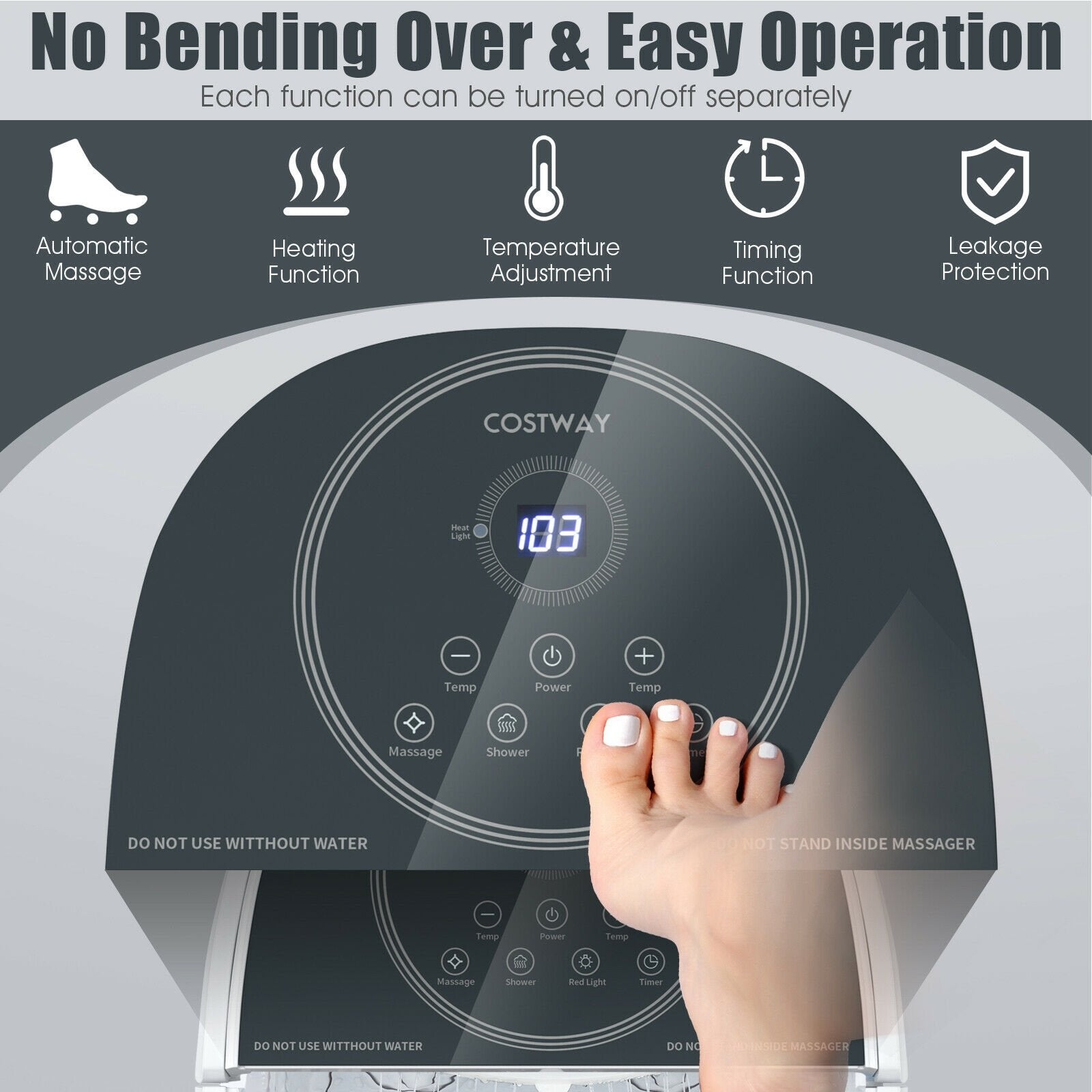 ● Precise Time and Temperature Control: You can set an appropriate spa time and heating temperature through the glass panel. The temperature can be adjusted between 95℉ to 108℉ according to your needs. Setting operation time of the pedicure tub from 10 to 60 minutes then you can take a nap on sofa to fully relax yourself.