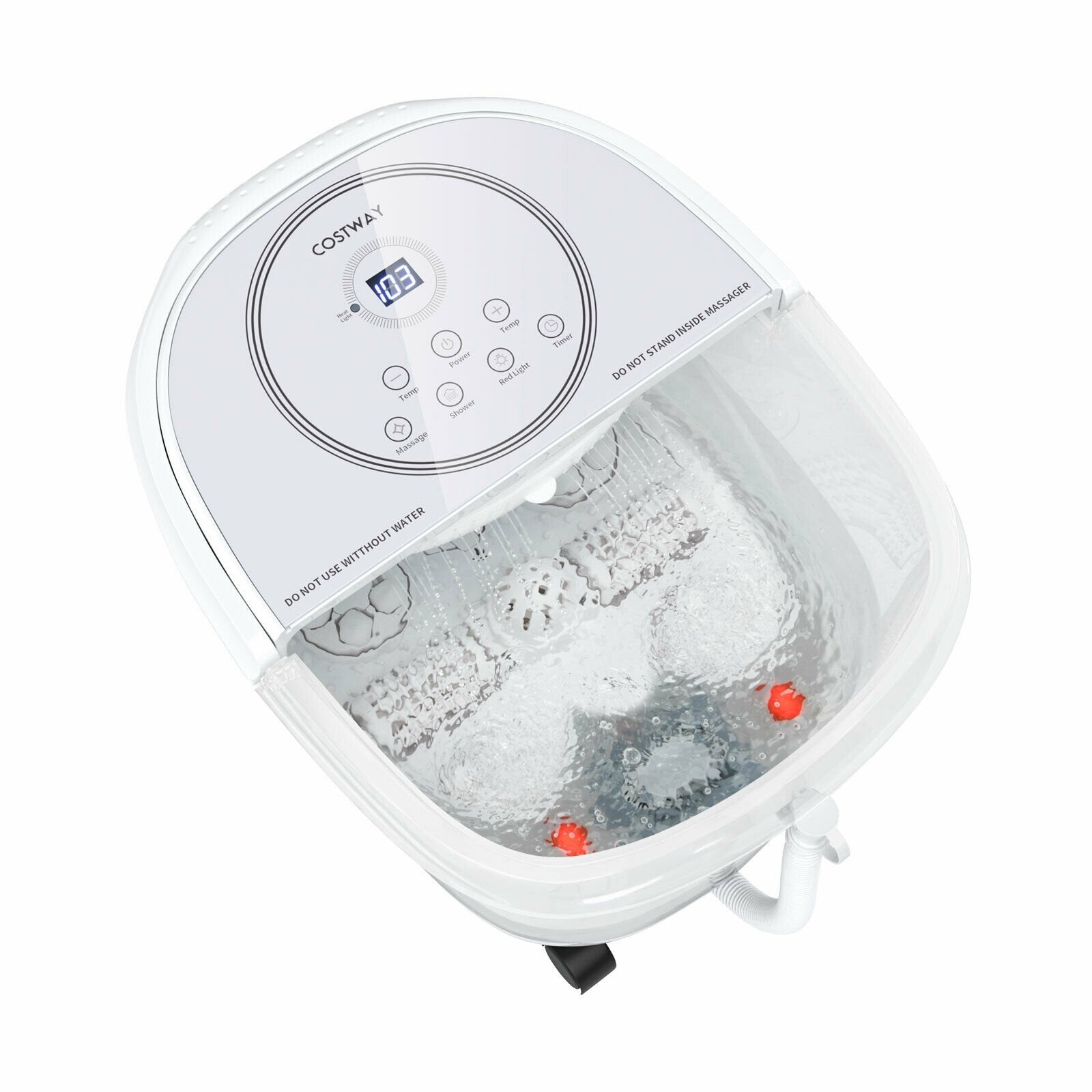 ● Adjustable Shower and Red Lights: This foot spa bath has an adjustable shower rod under the operation panel. Your ankles insteps and toes could enjoy all-round shower. Please do not forget to turn on its red light function to enhance spa effects and promote blood circulation thus relieving foot fatigue and pains.