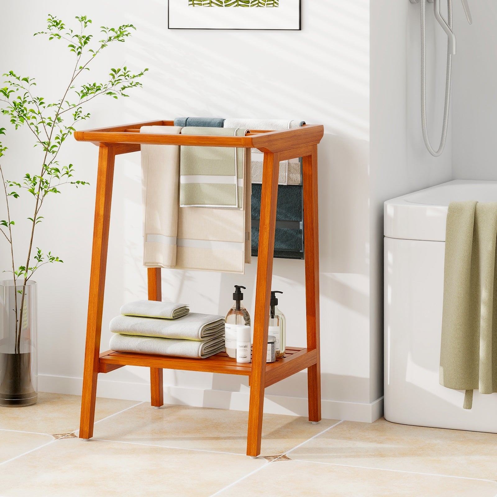 Freestanding Towel Rack with Storage Shelf for Bathroom