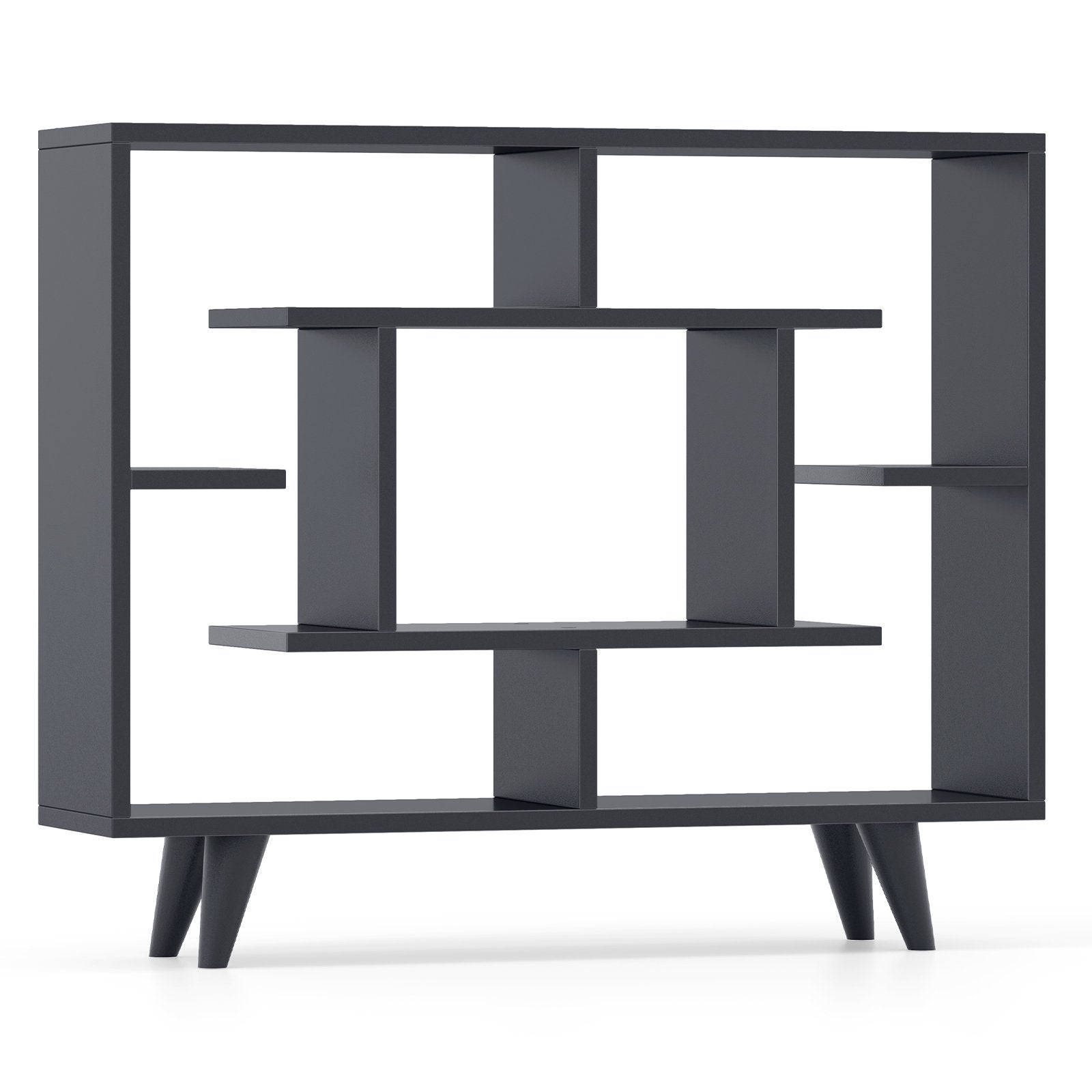 ● Modern Geometric Design: Transform your space with the open bookshelf which seamlessly merges a modern mid-century aesthetic with a striking geometric design. It is meticulously crafted to bring a sophisticated and timeless elegance to any room.