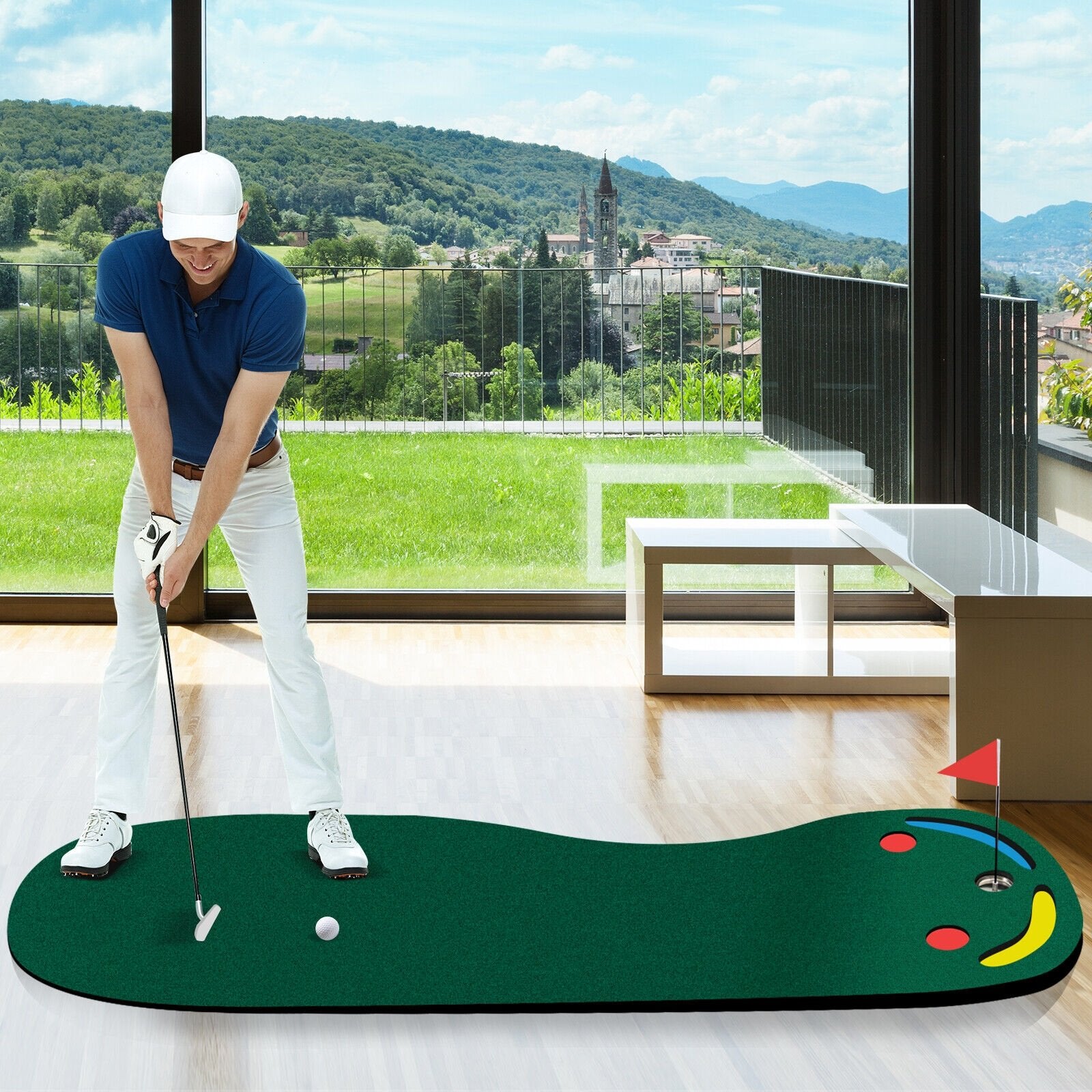 ● Simulate Real Putts: This golf putting mat is made of high-quality material to ensure long service life under heavy use. The true-roll putting surface simulates real green conditions. Plus the anti-skid backing is designed to stay still on various surfaces.