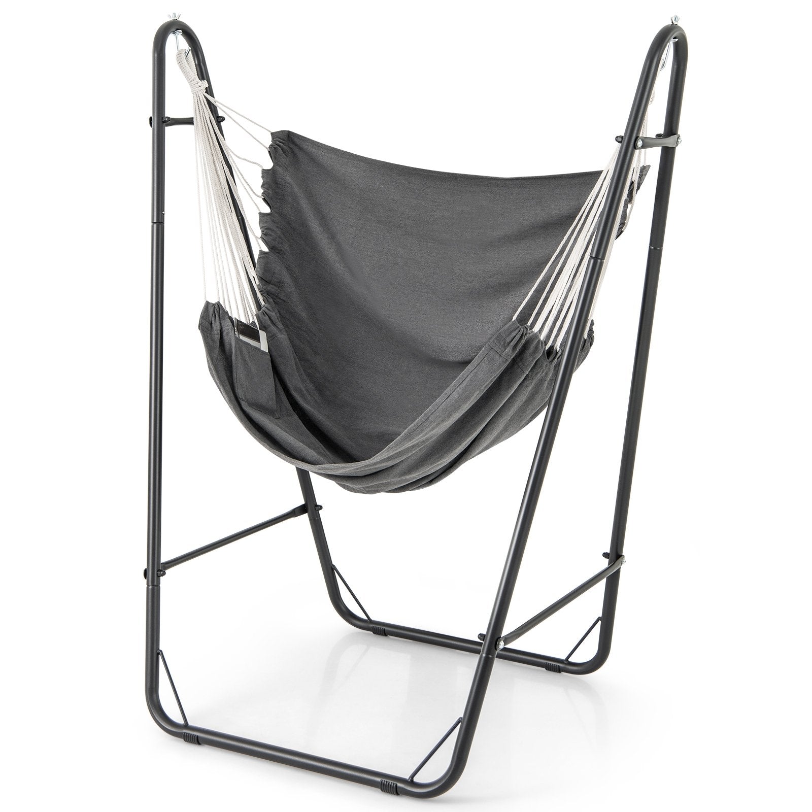 Hammock Chair with Heavy Duty Metal Frame and Side Pocket-Gray