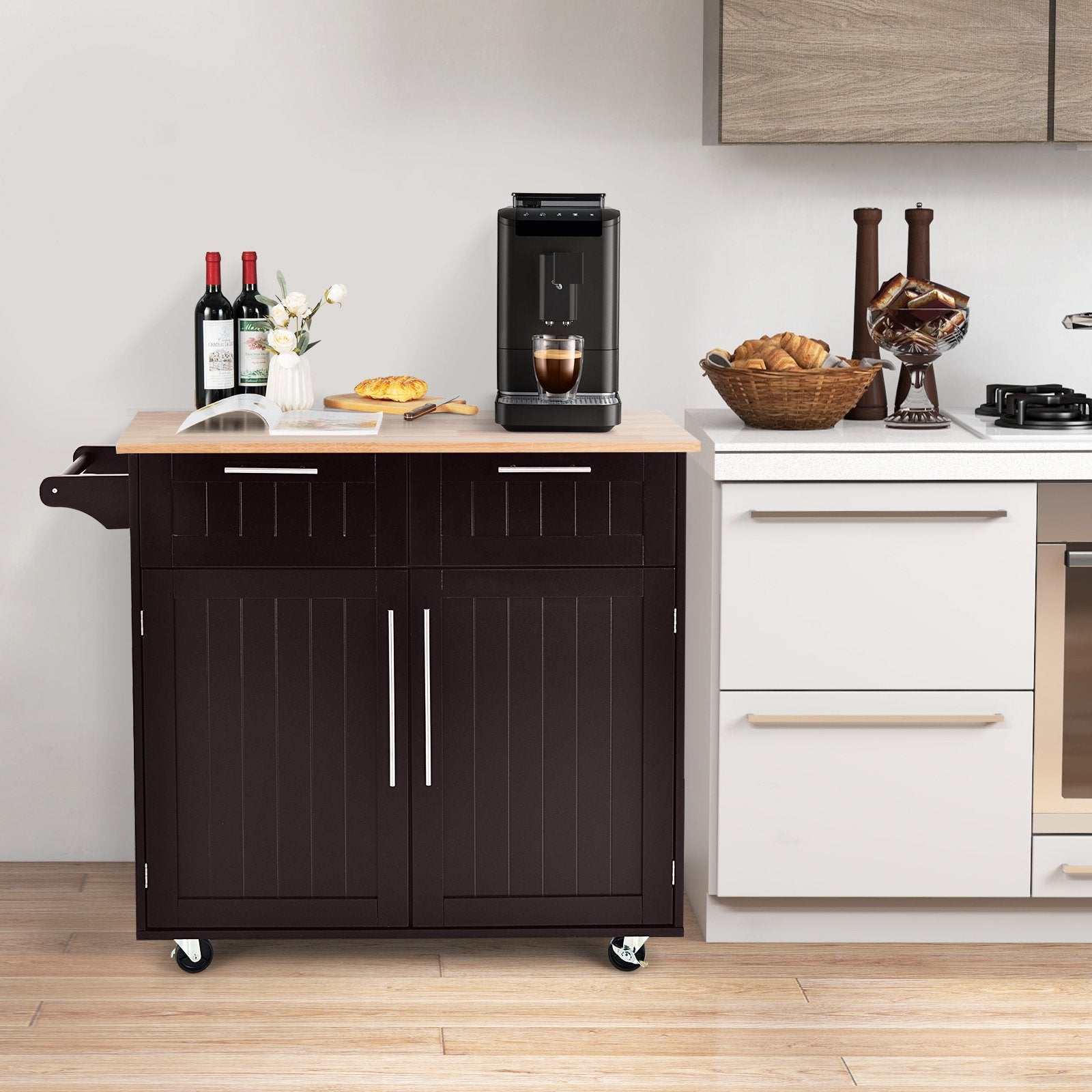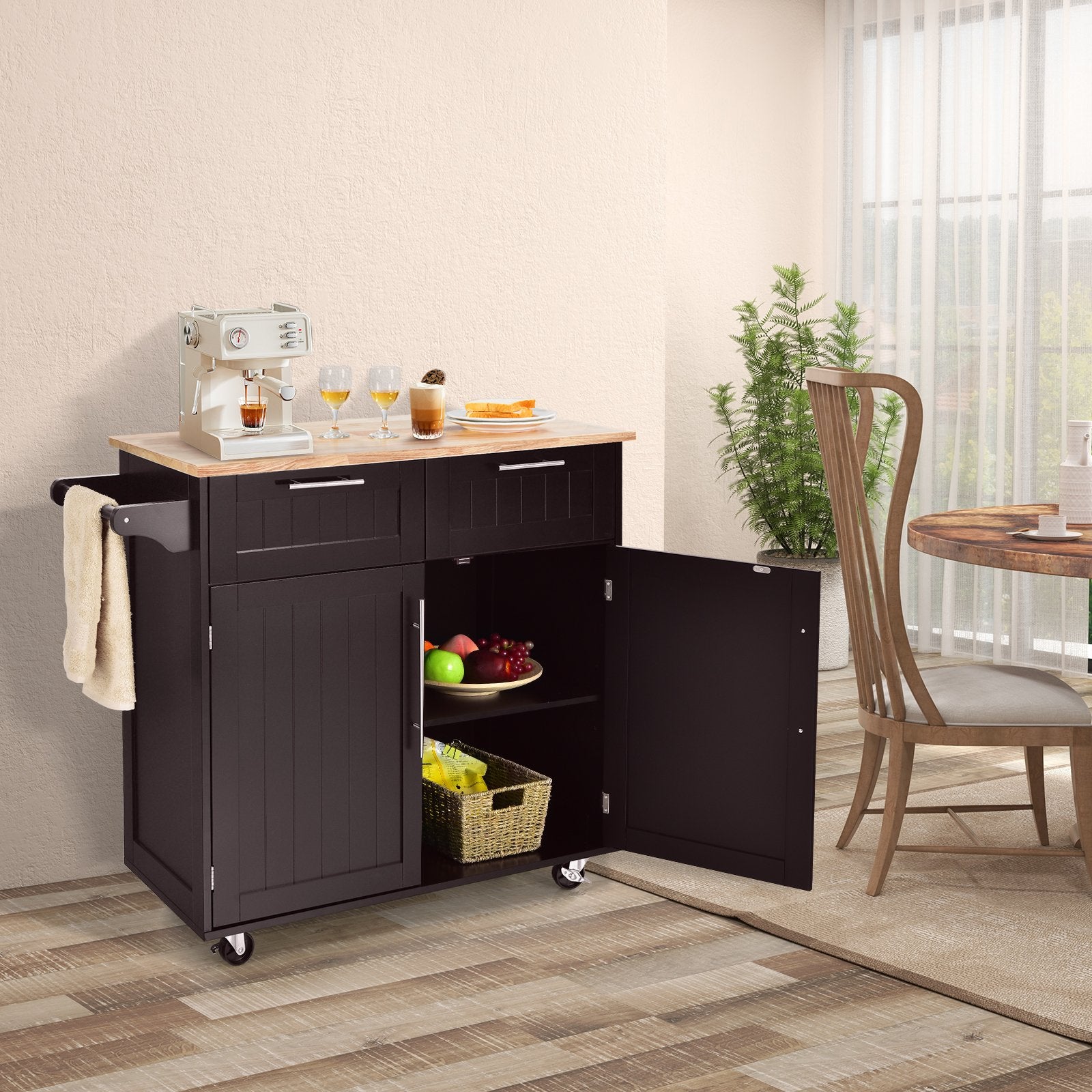 ● Sufficient Storage Space and Towel Rack: The well-organized kitchen trolley is stylish and versatile and is equipped with two utility drawers and double doors. The design of kitchen island cart is simple but practical.