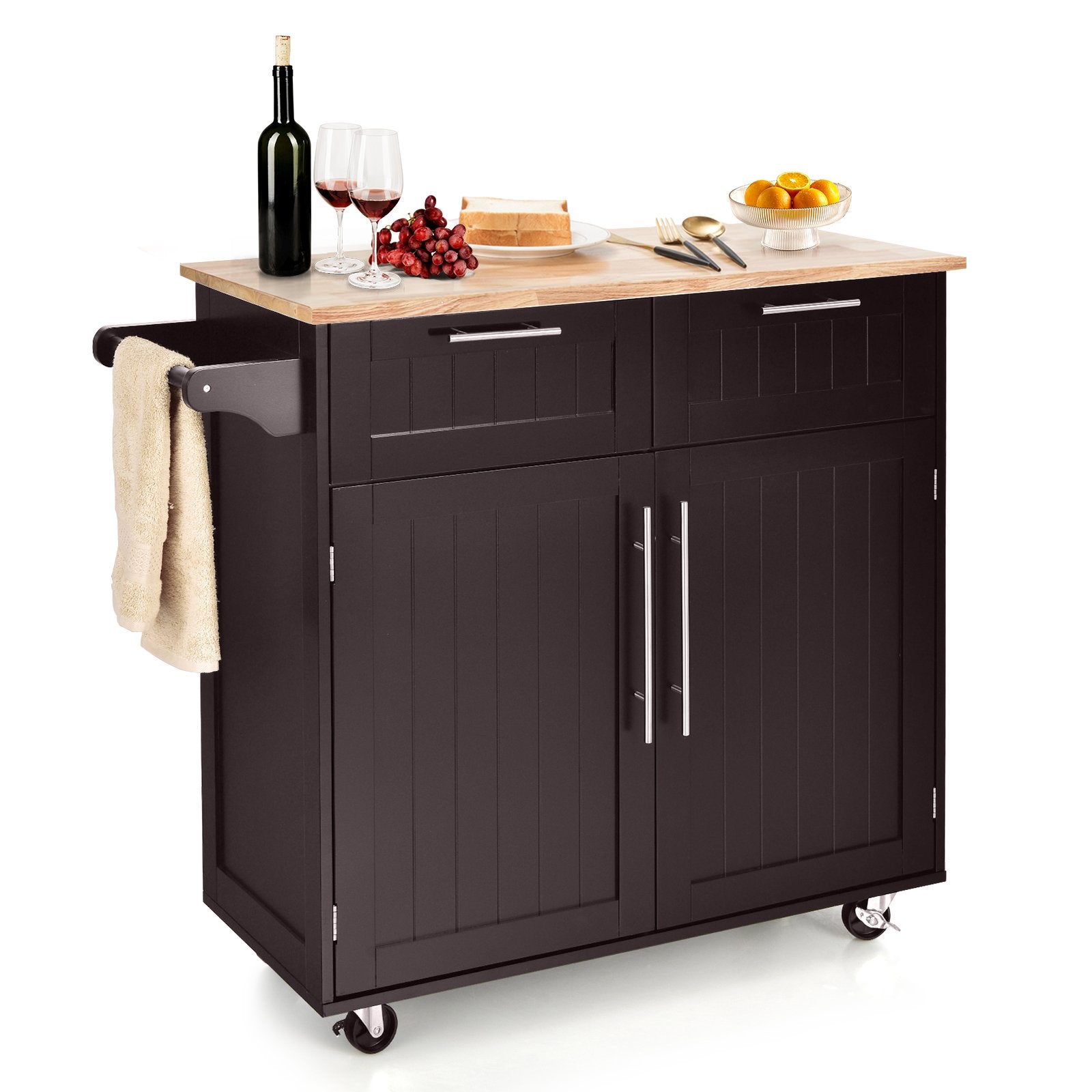 The wood body and natural workmanship will coordinate well with many decorating schemes. And Large rubber wood top meet your need of additional work surface. 4 universal steering casters (2 of them are lockable) provide easier mobility. It is perfect addition to anyone's apartment or home and is ideal for adding extra counter space to your kitchen.