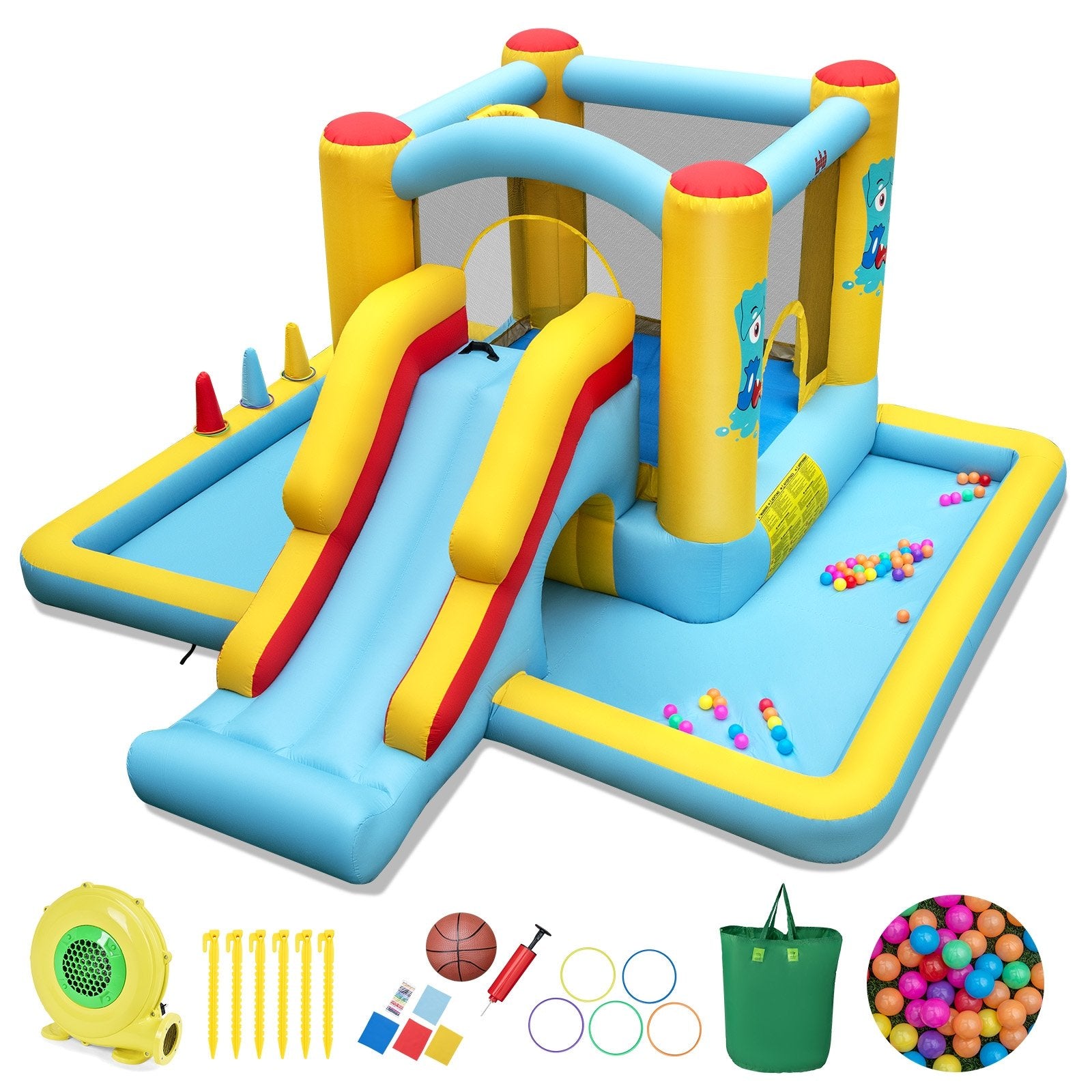 Inflatable Bounce House 7-in-1 Bouncy Castle with Slide and Tunnel with 480W Blower