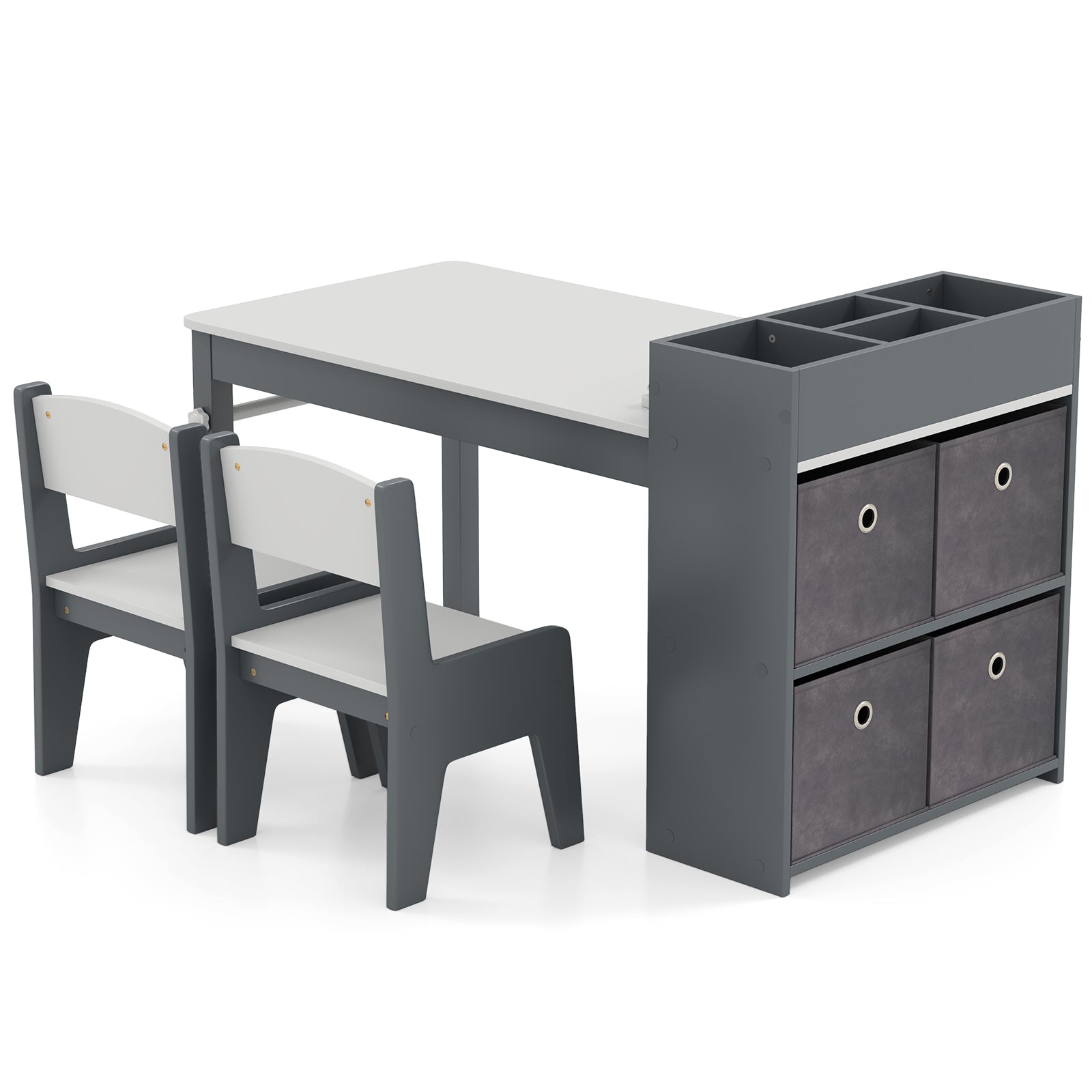 Kids Art Table and Chairs Set with 2 Chairs and Paper Roll-Gray