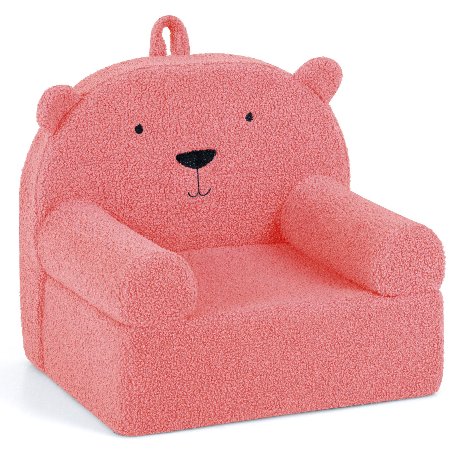 Kids Bear Sofa Toddler Foam Couch with Soft Fleece Fabric Cover-Brown