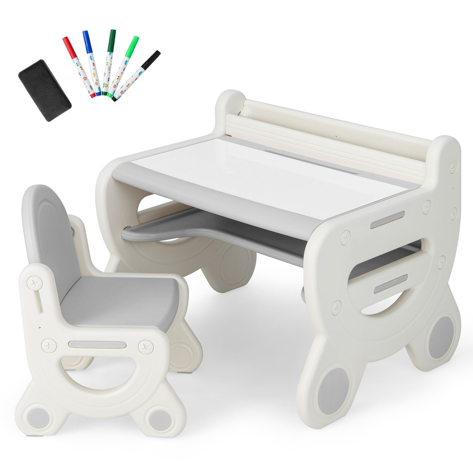 ● Paintable and Erasable Desktop: The kids drawing table and chair set is designed with an erasable graffiti tabletop. Thus toddlers can draw with the included watercolor pens and clean the tabletop with the equipped eraser. The table supports 155 lbs while the chair holds 110 lbs.