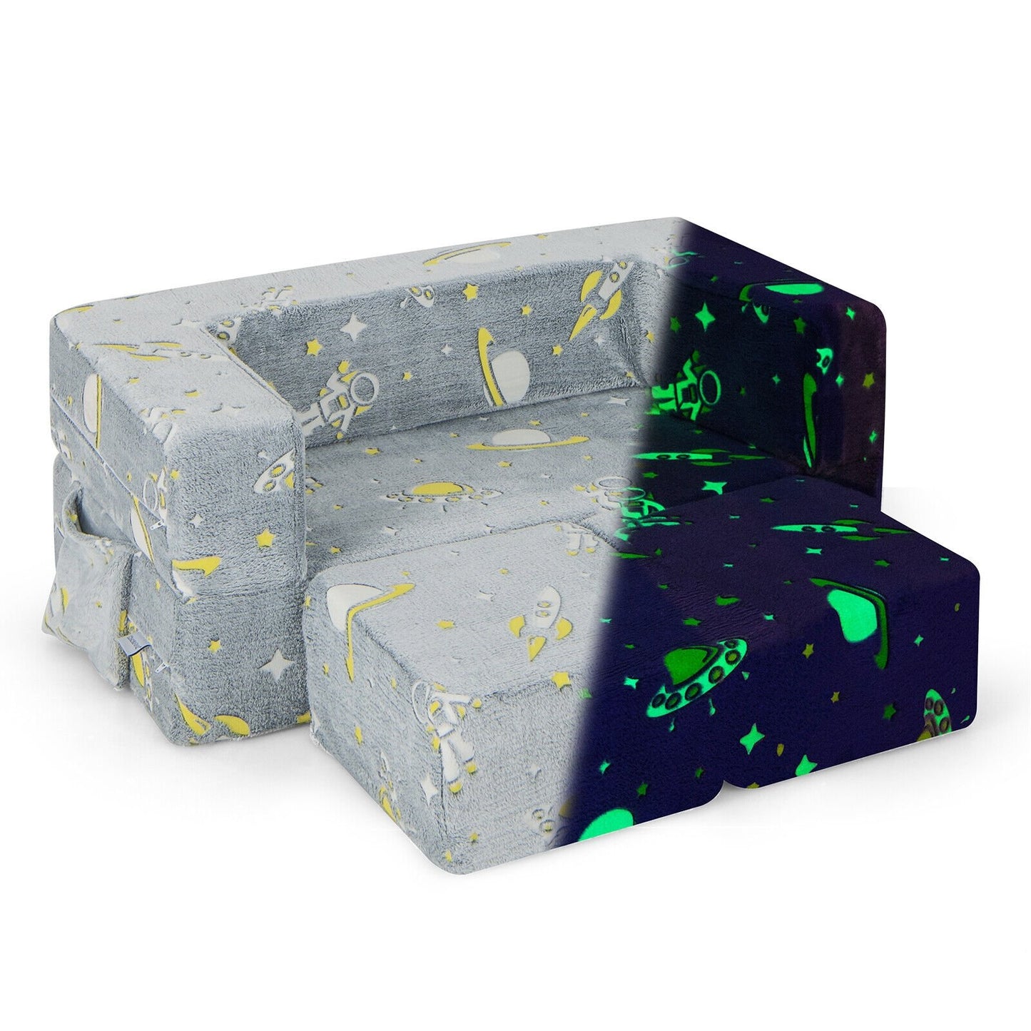 ● Unique Luminous Design: If you expose it to sunlight or bright indoor light for 15 minutes the kids play sofa set will glow in the dark. As a result toddlers are able to enjoy a visual feast of space-themed patterns which is fairly attractive. This toddler sofa is an ideal gift for birthdays Christmas and baby showers.