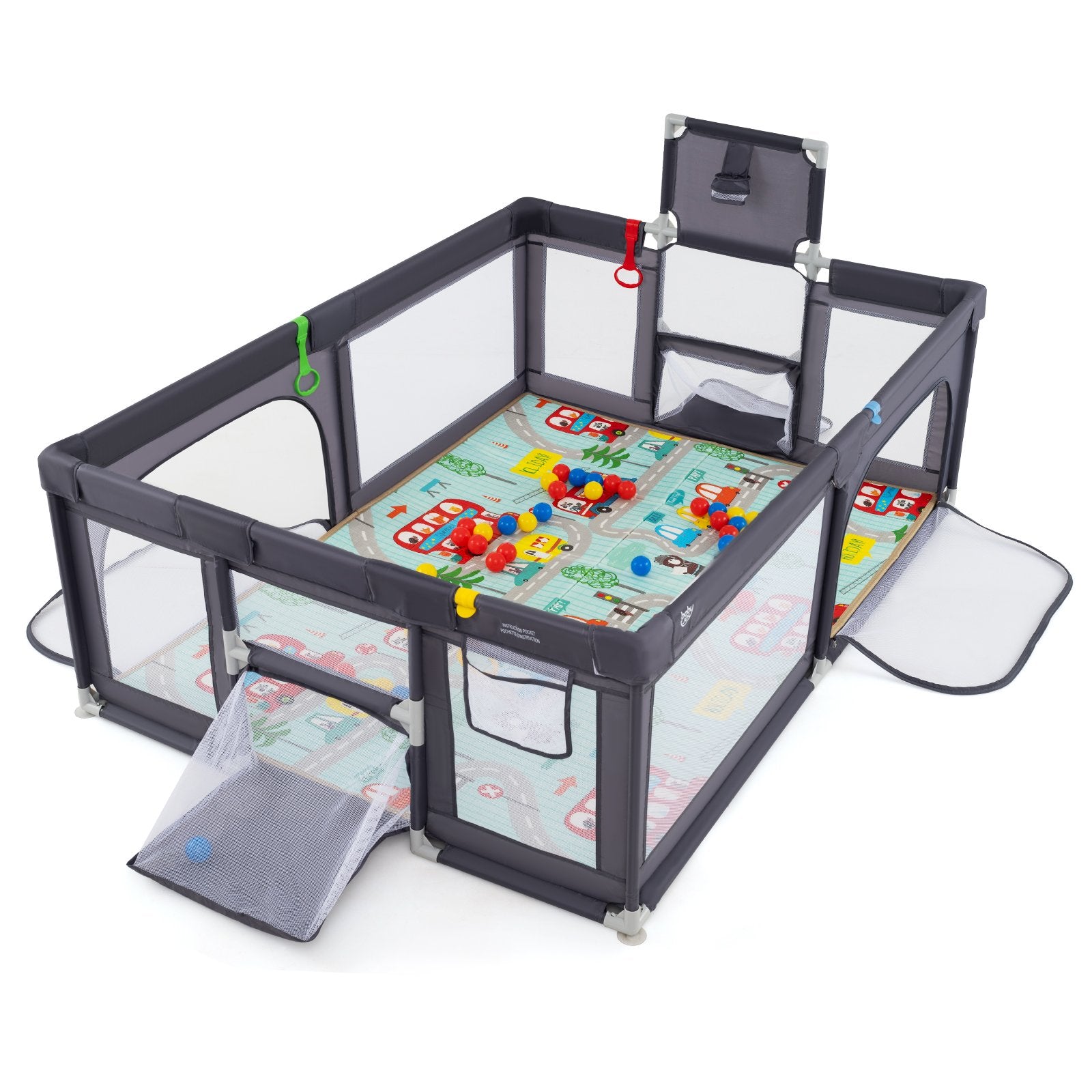Large Baby Playpen with Mat and Ocean Balls-Dark gray