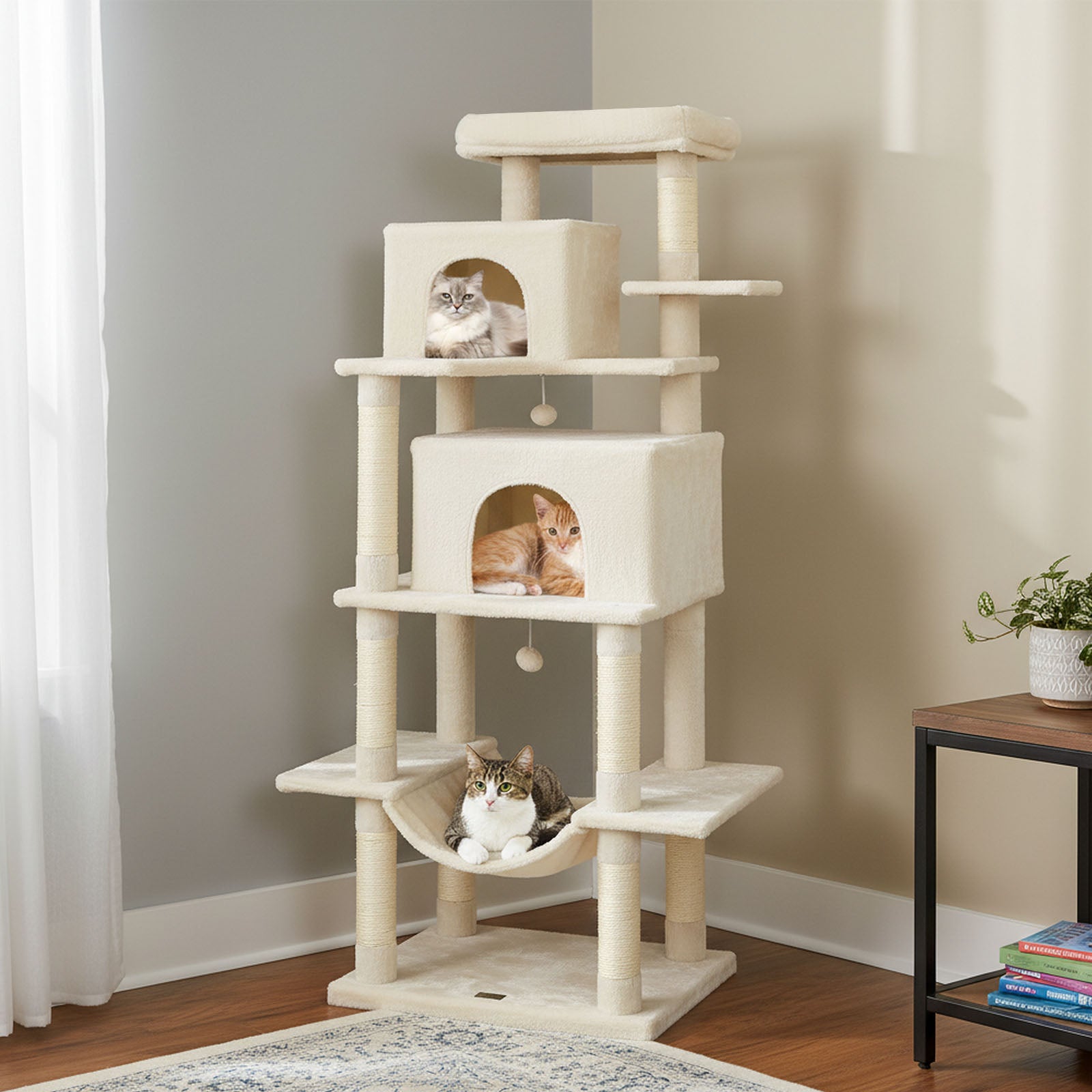 Large Cat Tree for Indoor Cats 70" Tall Cat Tower-Beige