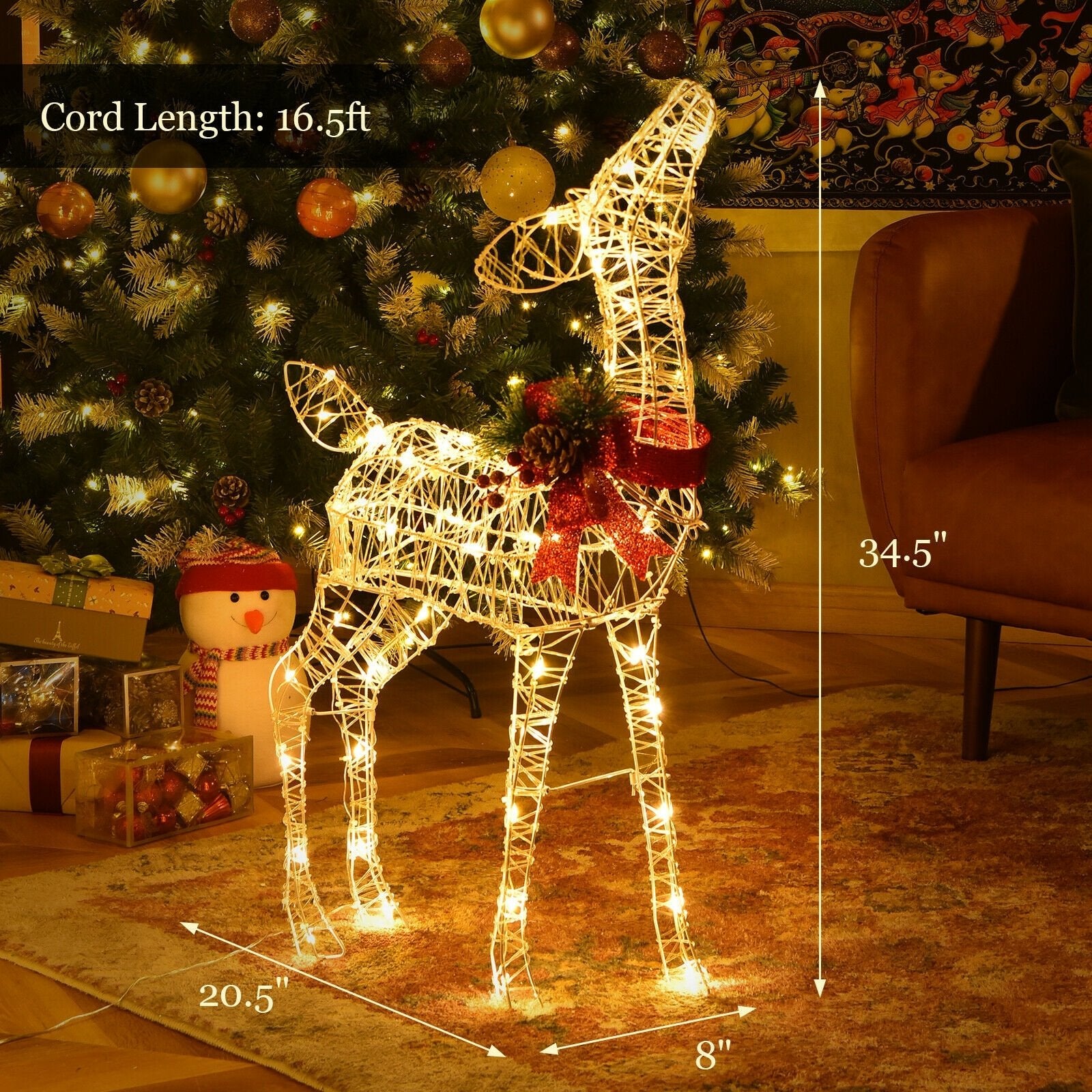 ● Warm LED Lights:The whole body of the small reindeer is wrapped with 50 high-quality LED light bulbs. You can switch it on and off freely based on your preference. The warm white light makes the reindeer more attractive and appealing making it a wonderful highlight both indoors and outdoors