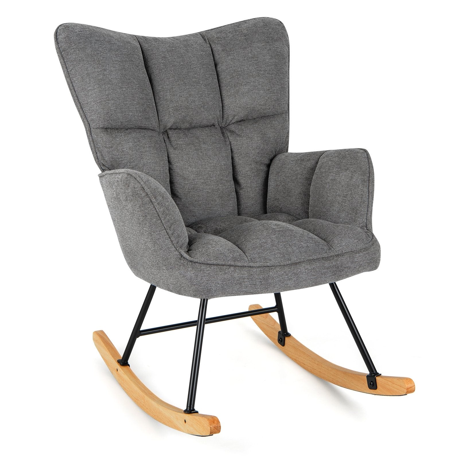 Linen Nursery Rocking Chair with High Backrest and Padded Armrests-Gray