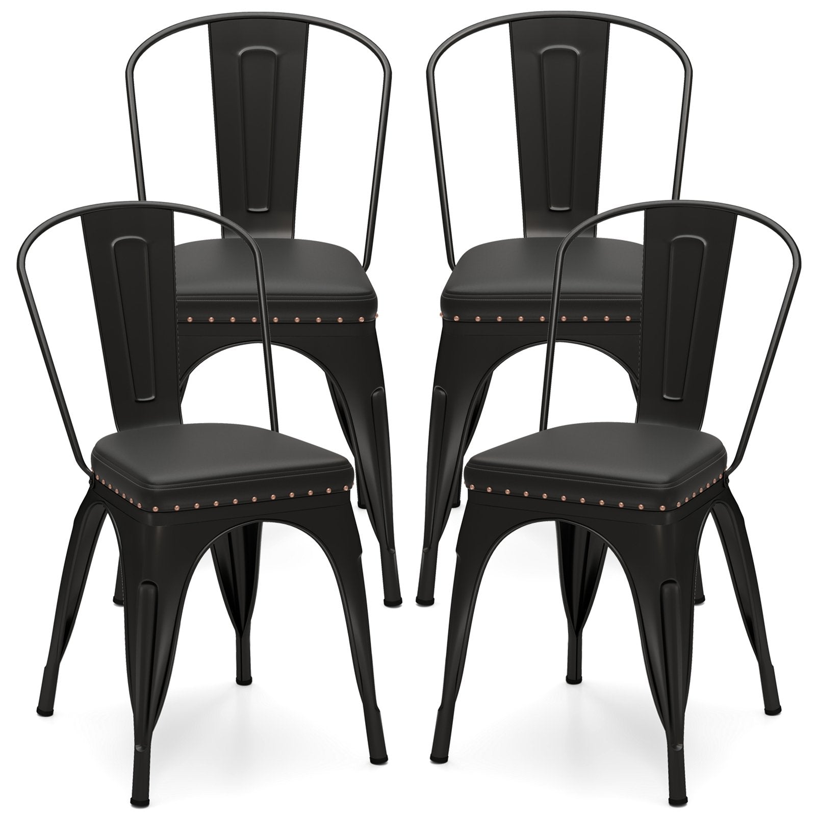 Metal Dining Chair Set of 4 Stackable Kitchen Chairs with Removable Backs and PU Leather Cushioned Seat-Black