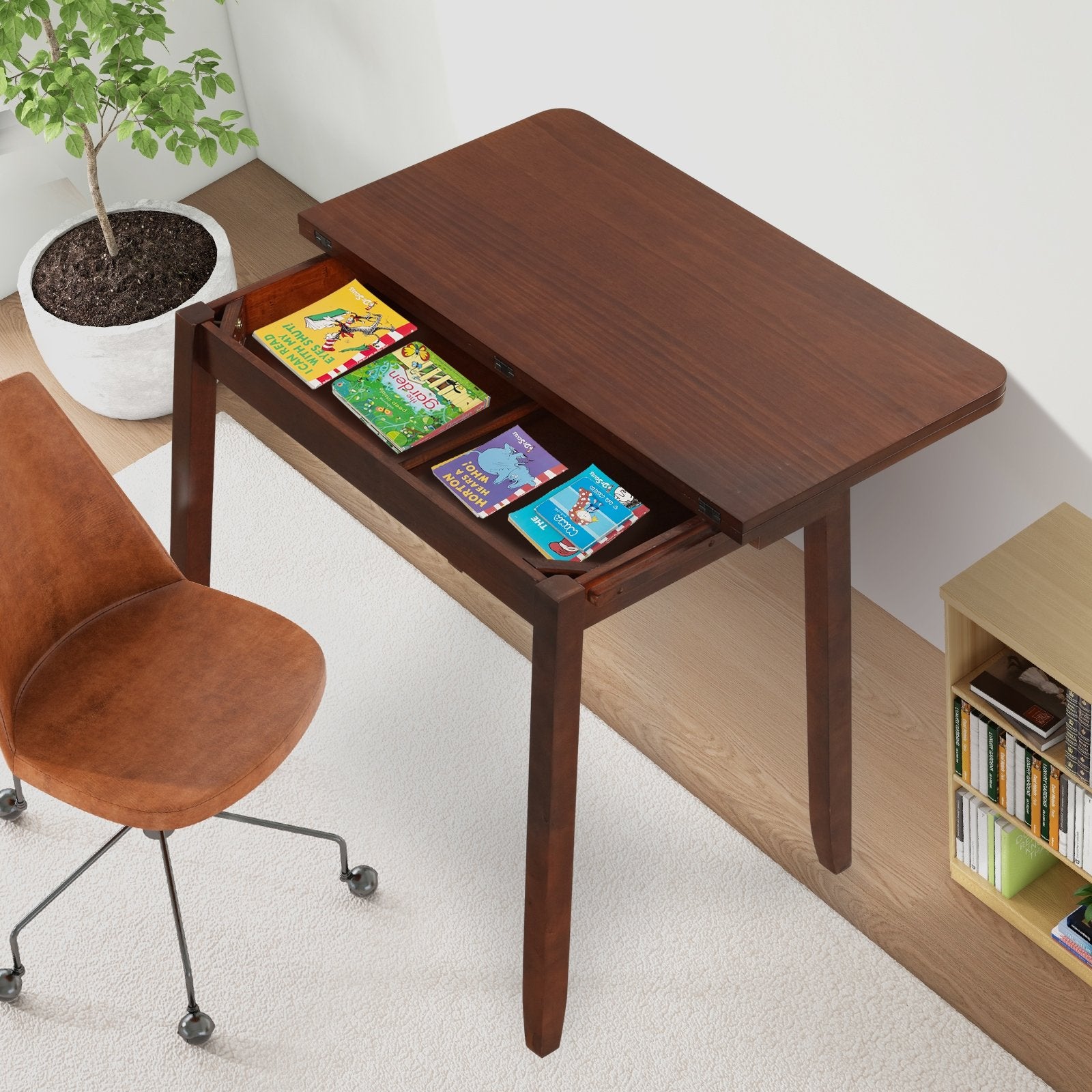 Mid Century Folding Dining Table for 4 People Extendable Kitchen Table with Hidden Storage-Brown