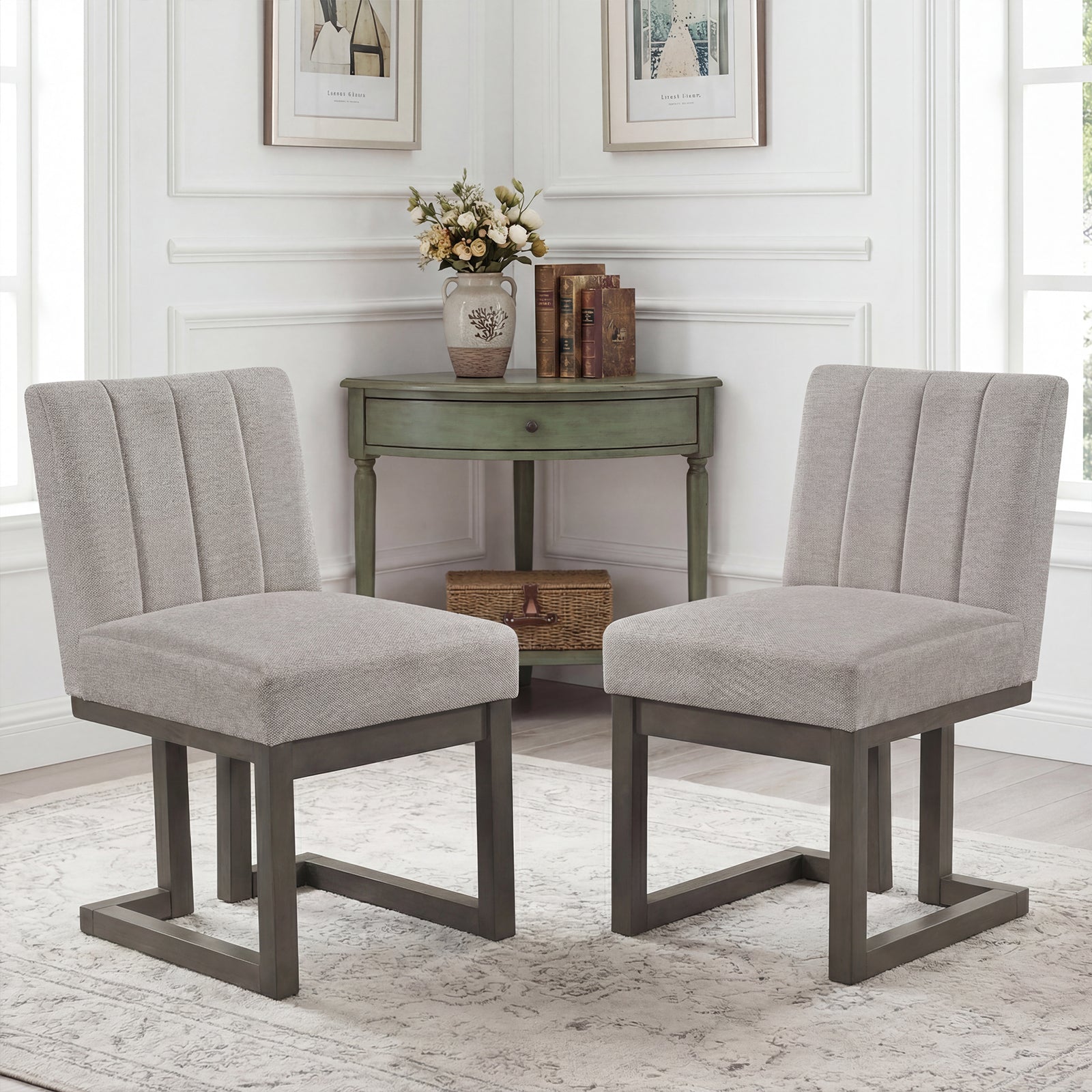Modern Farmhouse Fabric Dining Chairs Set of 2 with 5.5" Thickened Padded Seat-Gray