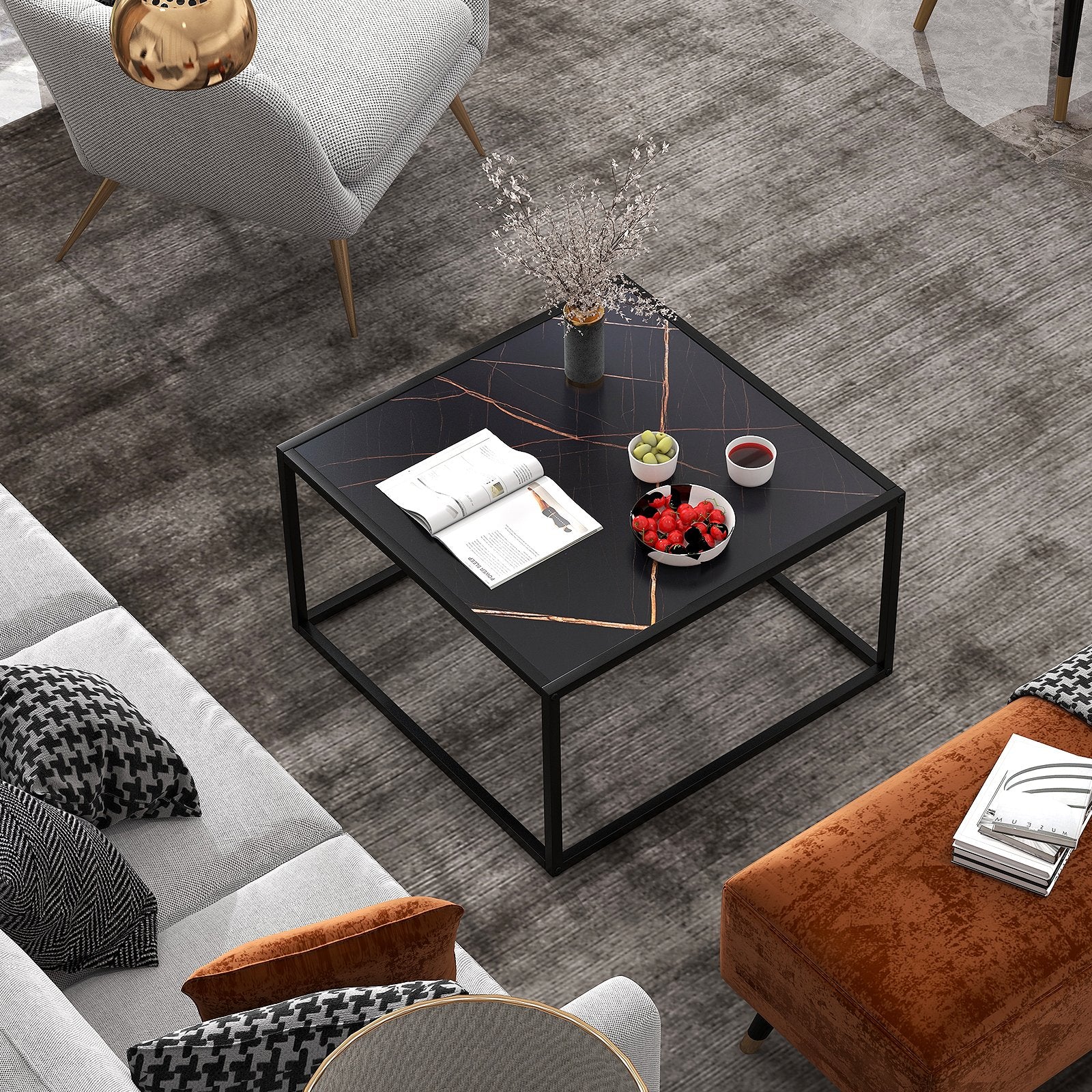 ● Elegant Faux Marble Design: Designed with a sleek square shape and pure colors the coffee table looks minimalist. Plus it also features a faux marble tabletop and a matte steel frame. Both bring out a charming modern style giving your home a new elegant look.