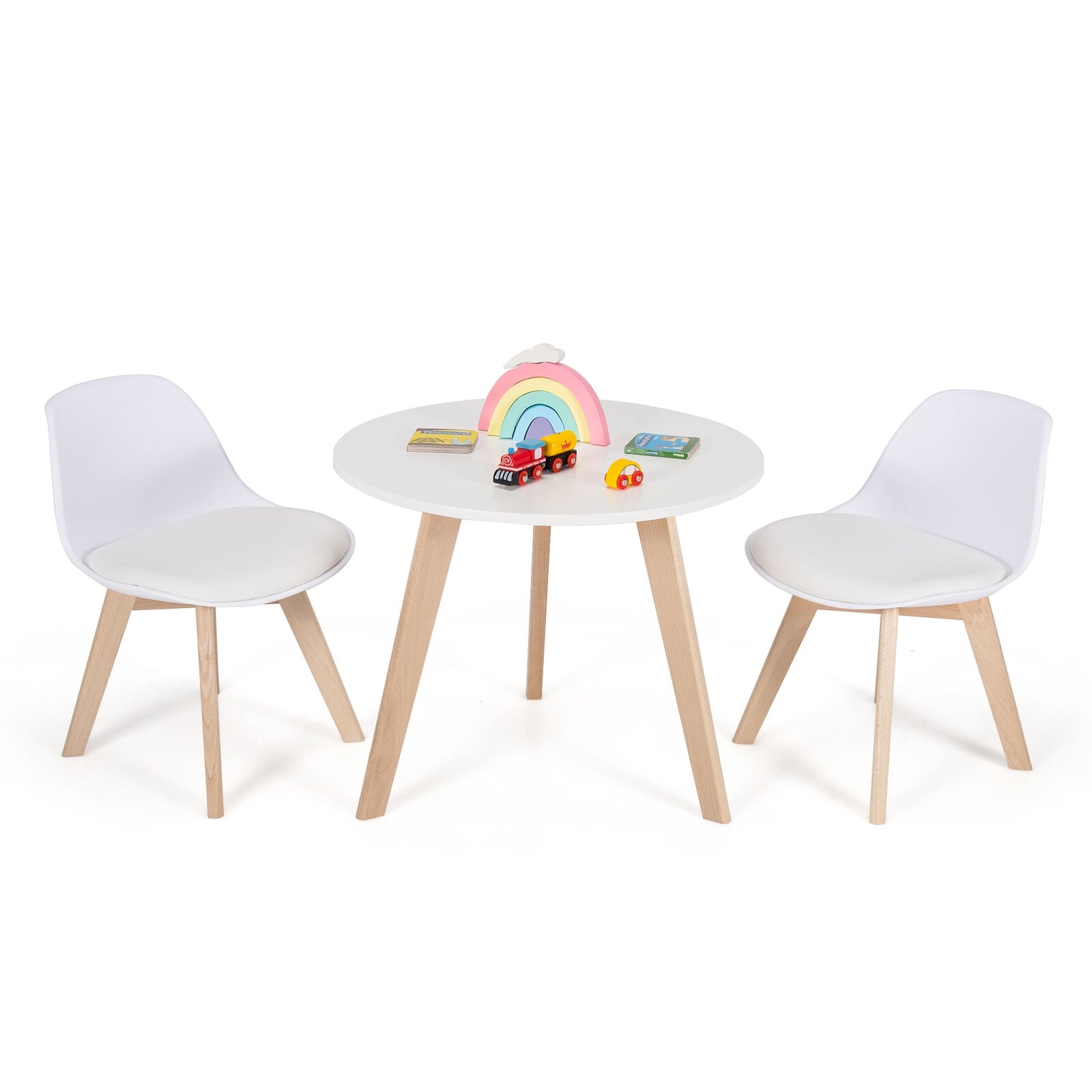 Modern Kids Activity Play Table and 2 Chairs Set with Beech Leg Cushion-White