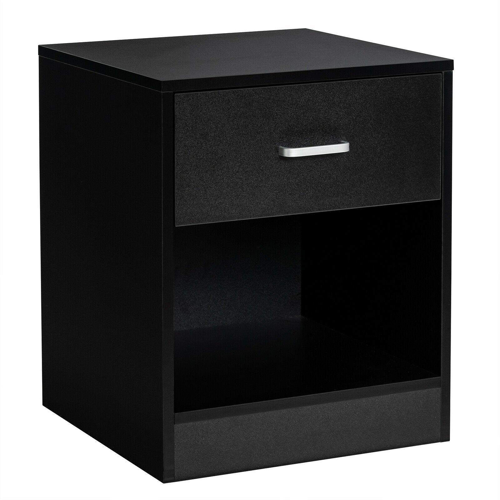 Modern Nightstand with Storage Drawer and Cabinet-Black