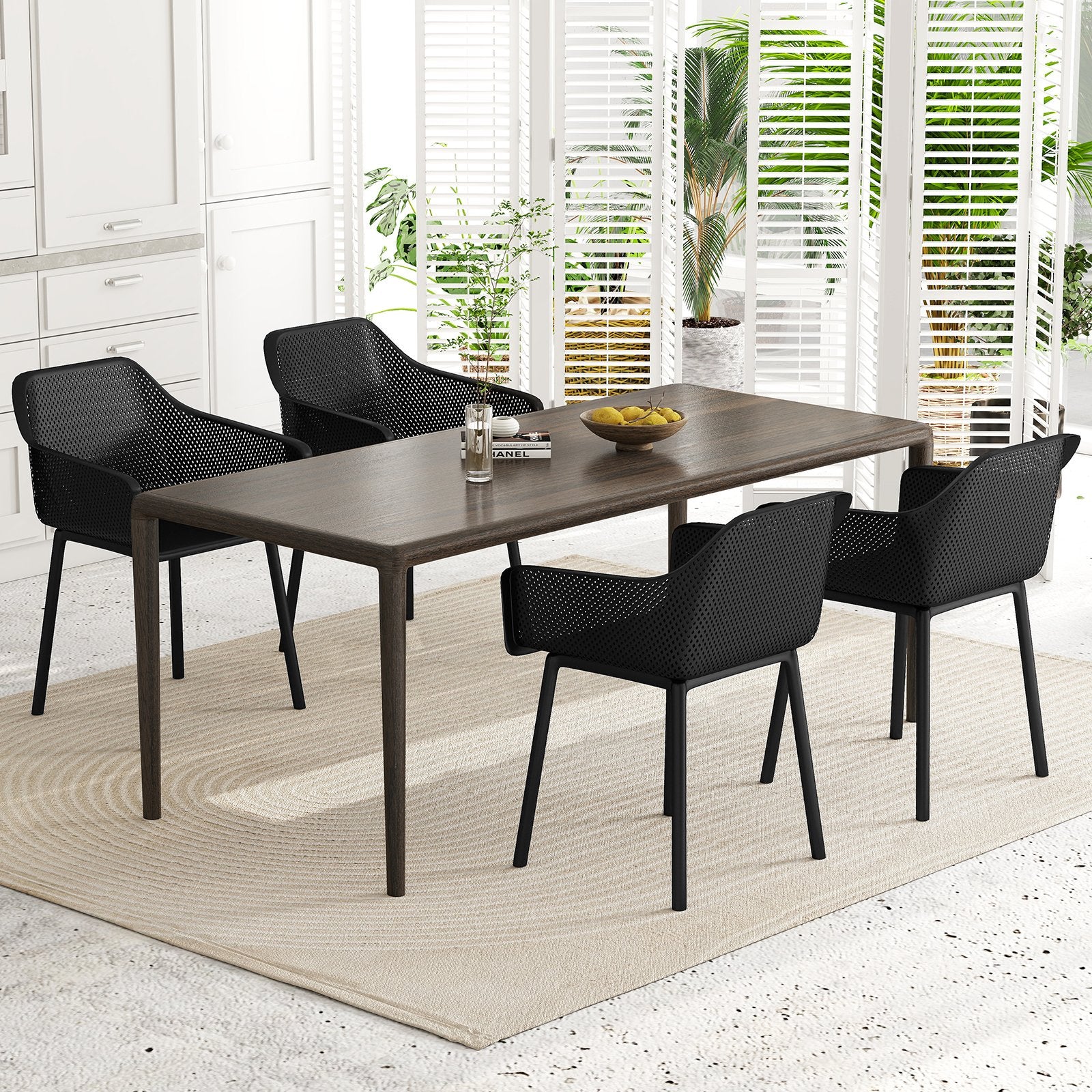 Modern Plastic Dining Chairs Set of 4 Kitchen Armchairs with Breathable Mesh Backrest-Black