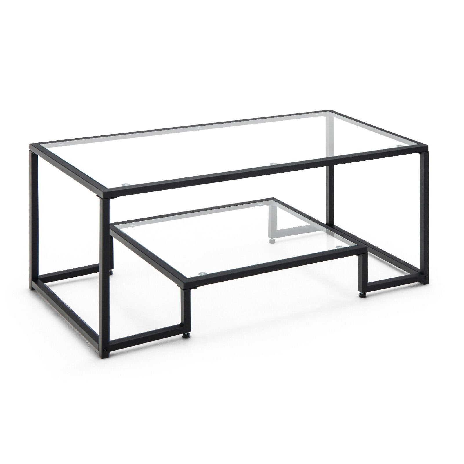 Modern Rectangular Coffee Table with Glass Table Top-Black