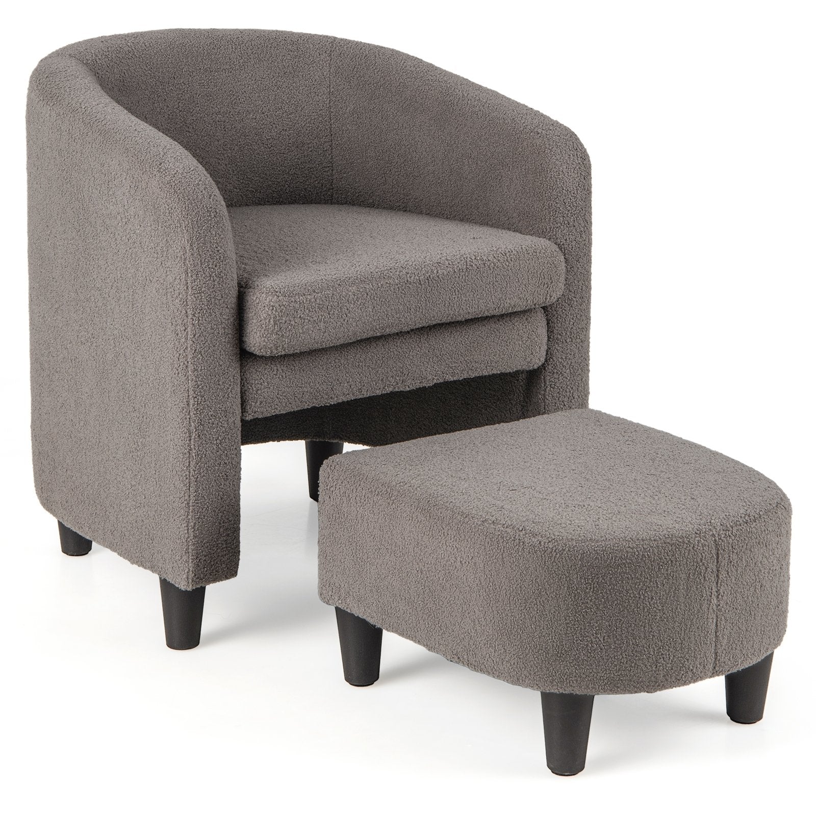 Modern Upholstered Barrel Teddy Velvet Chair with Ottoman-Beige