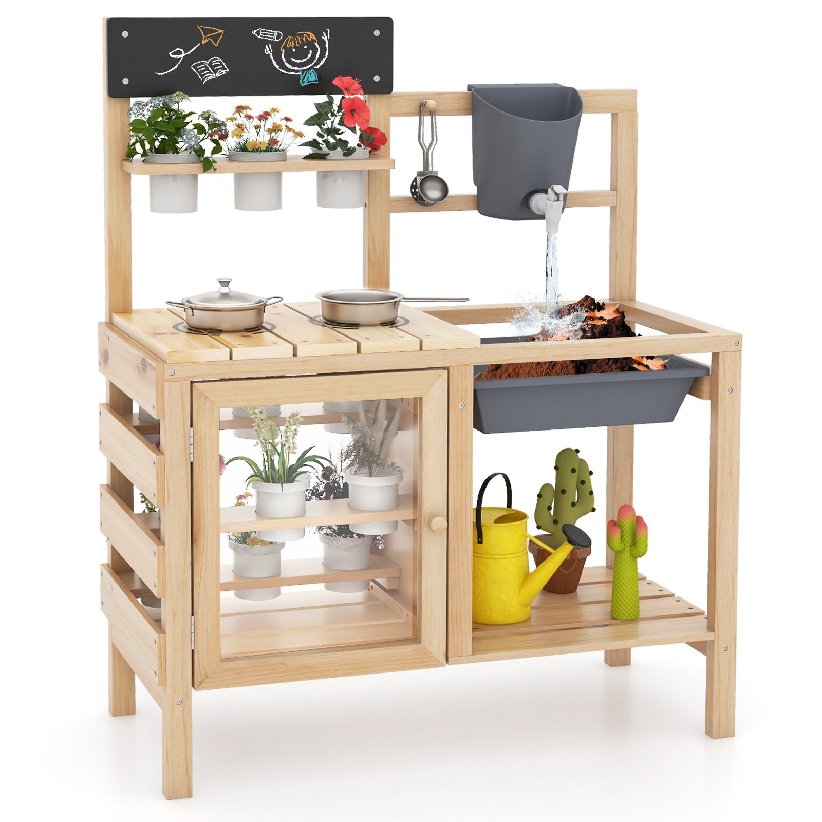 Mud Kitchen Playset with Sink and Plants Observation Room-Natural