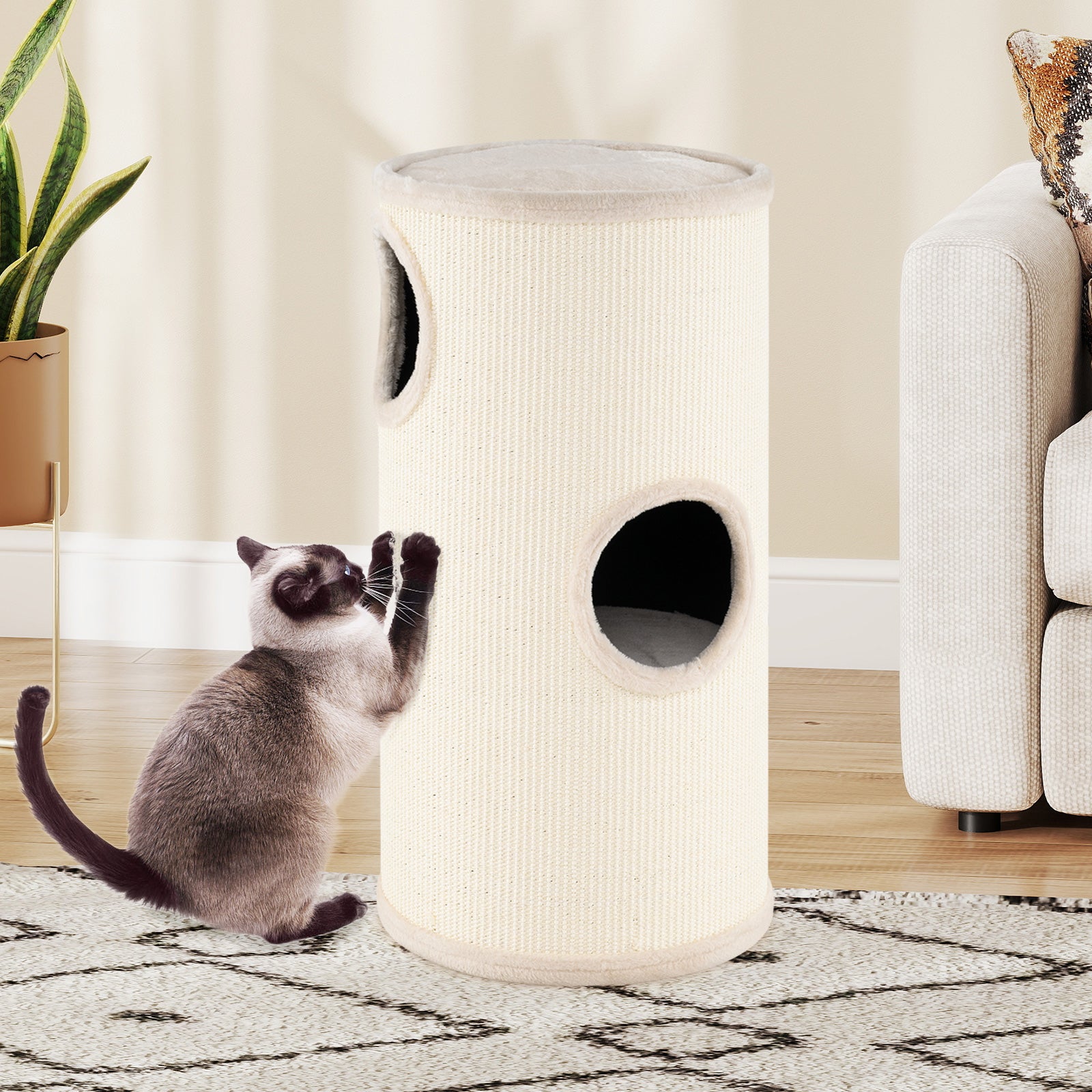 Multi-level Cat House with Sisal Scratching Pad-Beige
