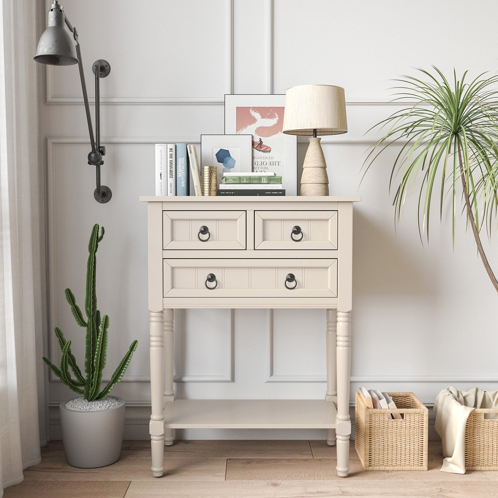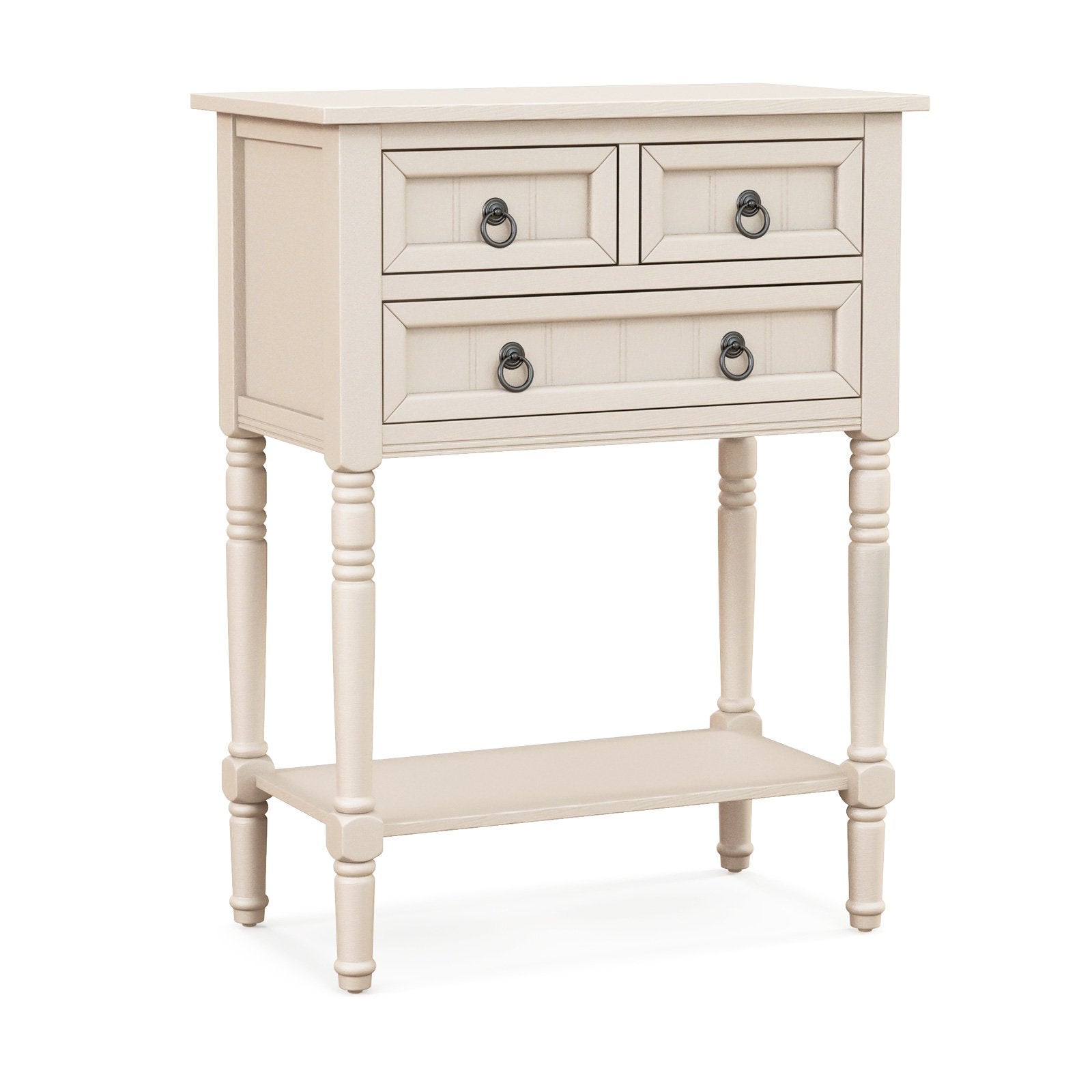 Narrow Console Table with 3 Storage Drawers and Open Bottom Shelf-Beige