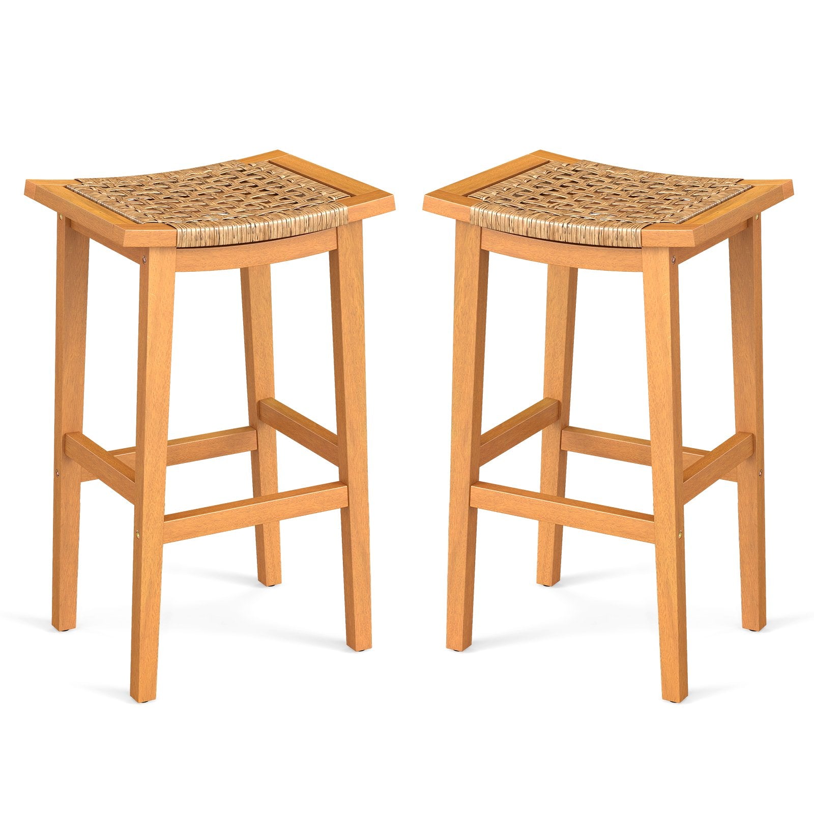 ● Ergonomic Saddle Seat: The contoured saddle seats of these wood bar stools wrapped in hand-woven PE rattan help keep air circulating allowing you to stay cool and comfortable during outdoor gatherings.