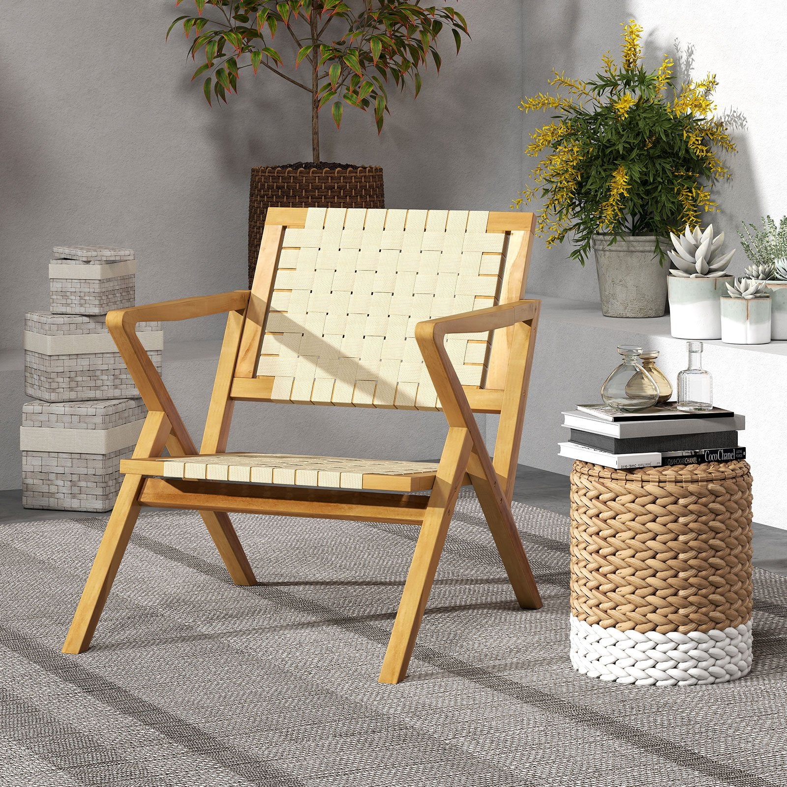 Outdoor and Indoor Teak Wood Patio Chair wuth Webbing Seat and Backrest-Natural
