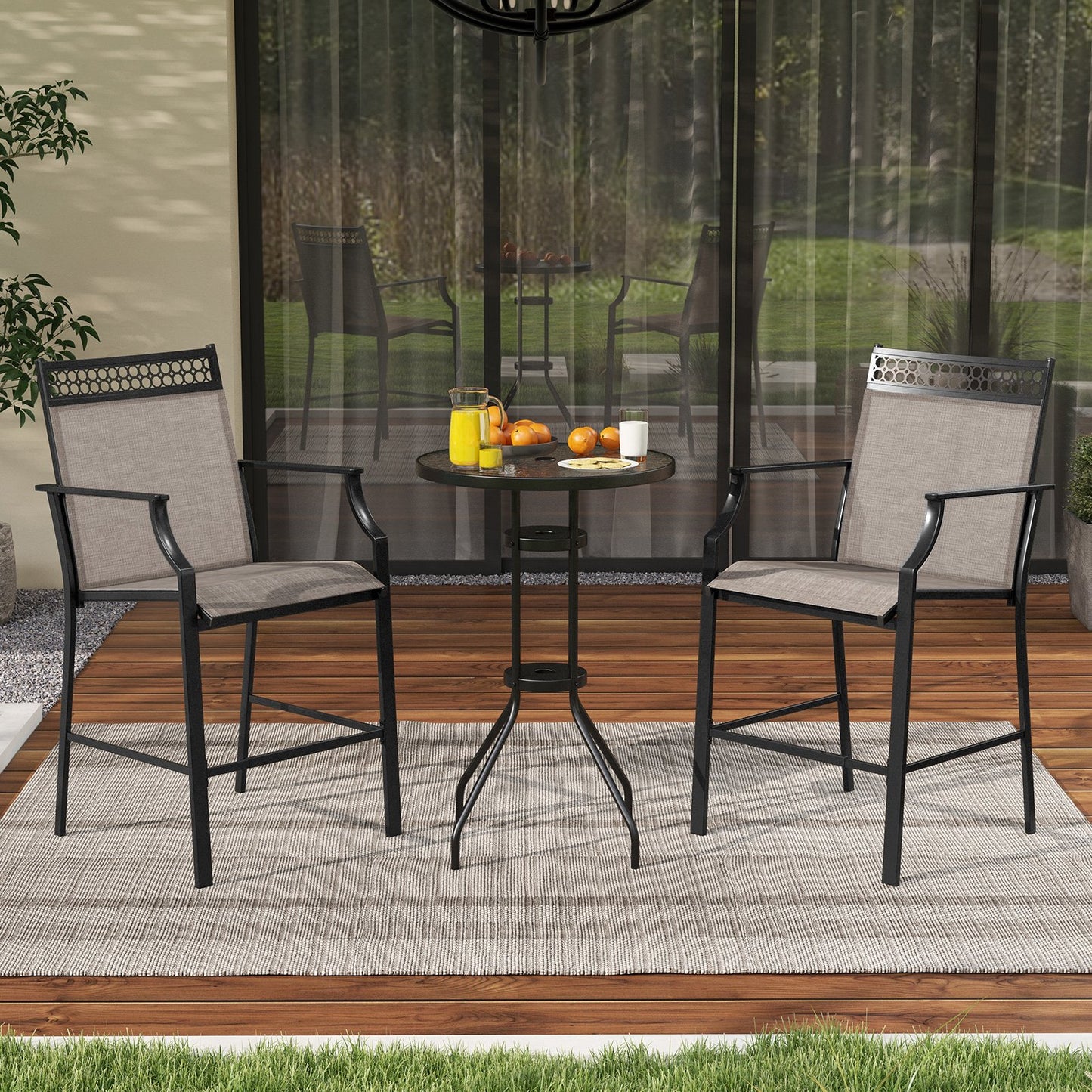 Outdoor Counter Stools Set of 2 Heavy-Duty Barstools with Footrest and Armrests-Blue