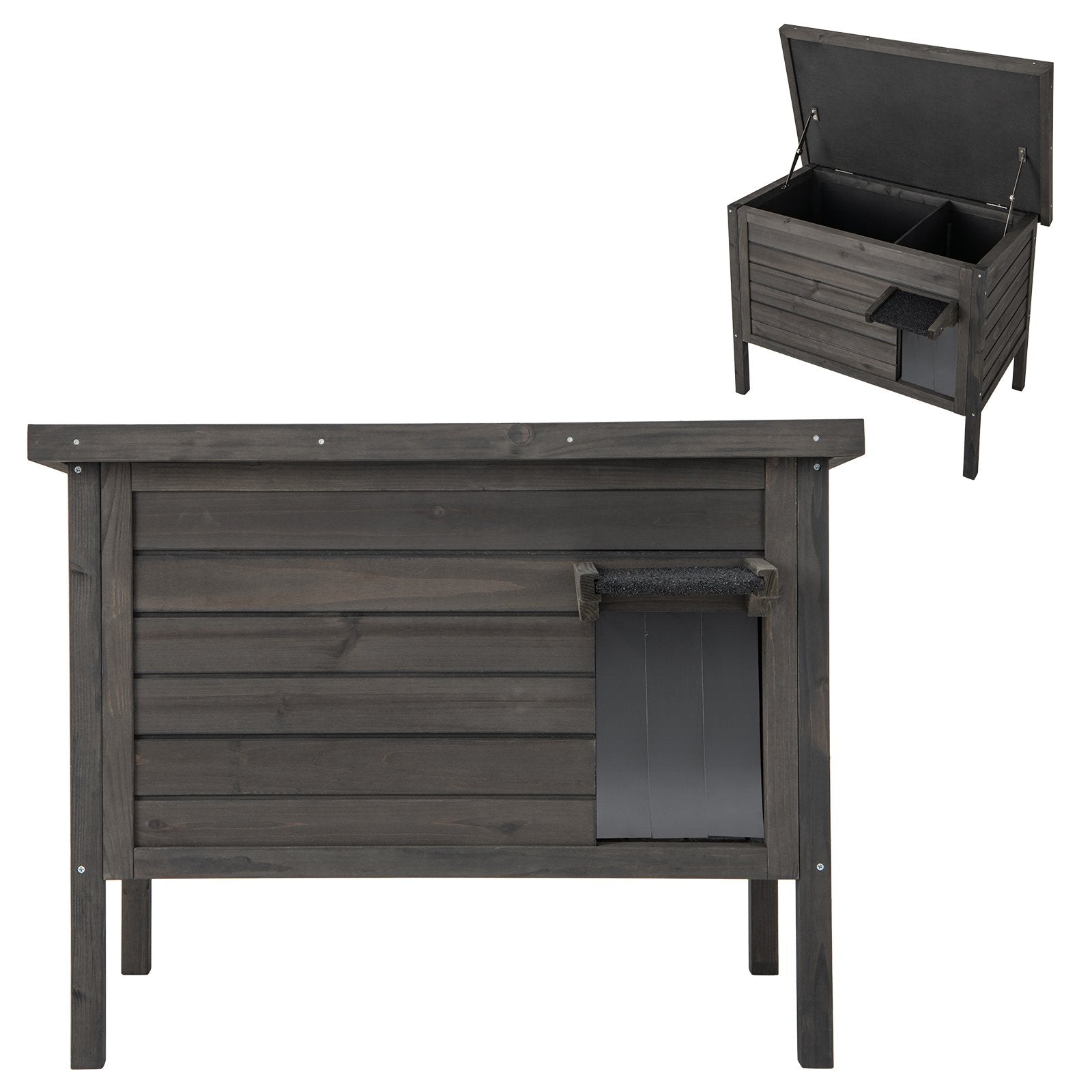 ● Openable Roof: The outside feral cat house features an openable roof which could not provide easy access for cleaning inside but also allow your cat to freely enter and exit the house. And the metal hinges ensure a smooth and secure opening and closing motion.