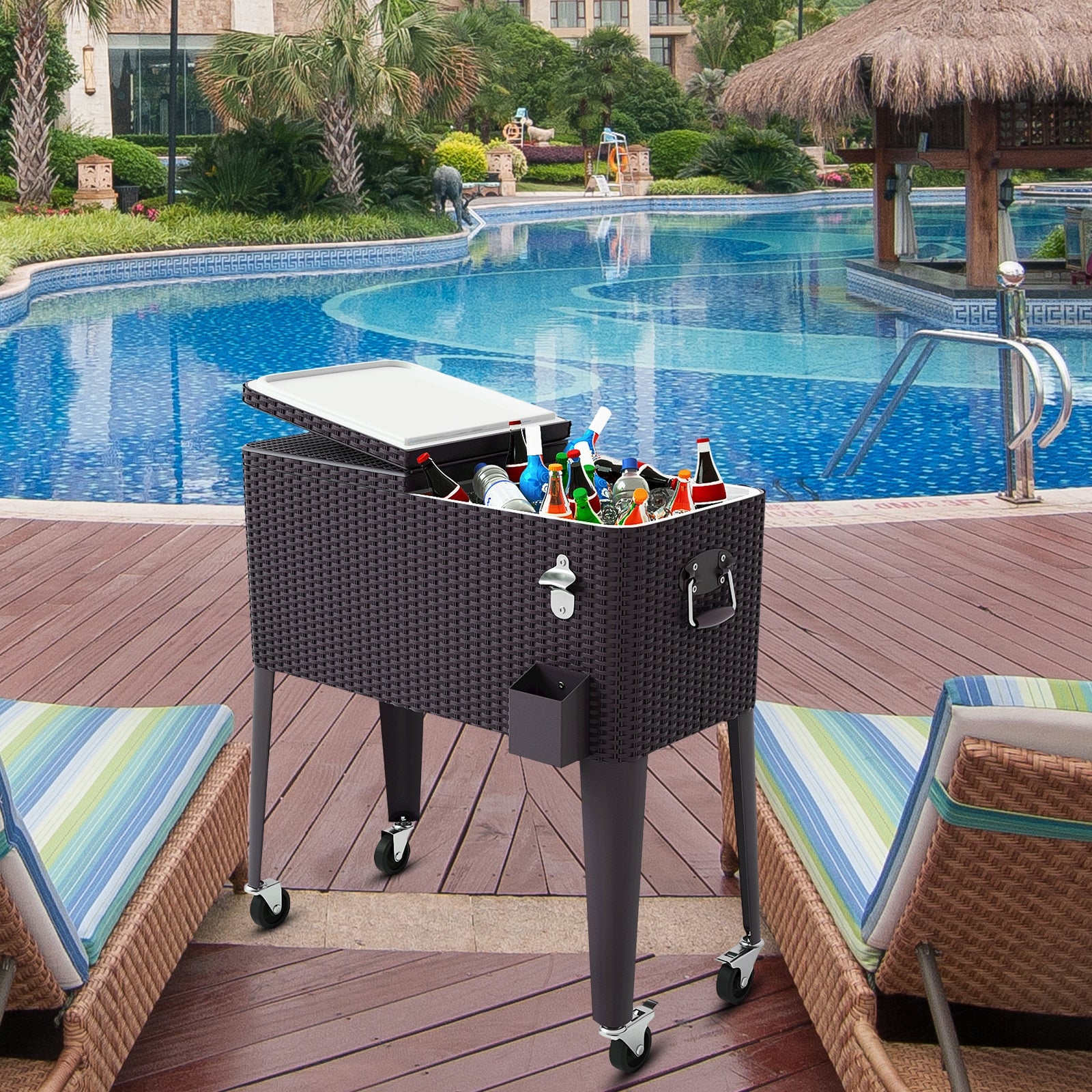 80QT Outdoor Party Portable Rattan Rolling Cooler Cart