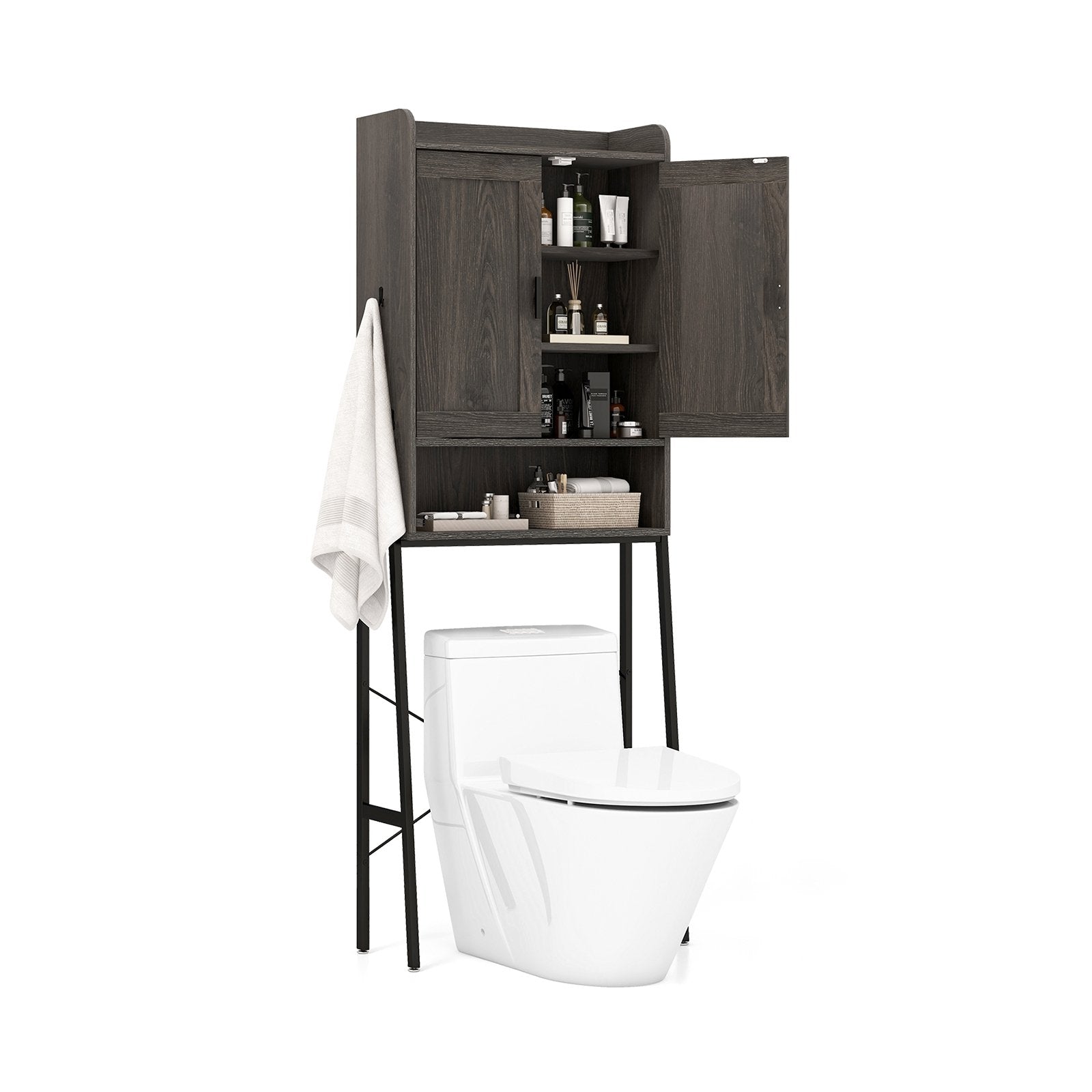 Over the Toilet Storage Cabinet Space Saver Organizer with Double Doors-Gray