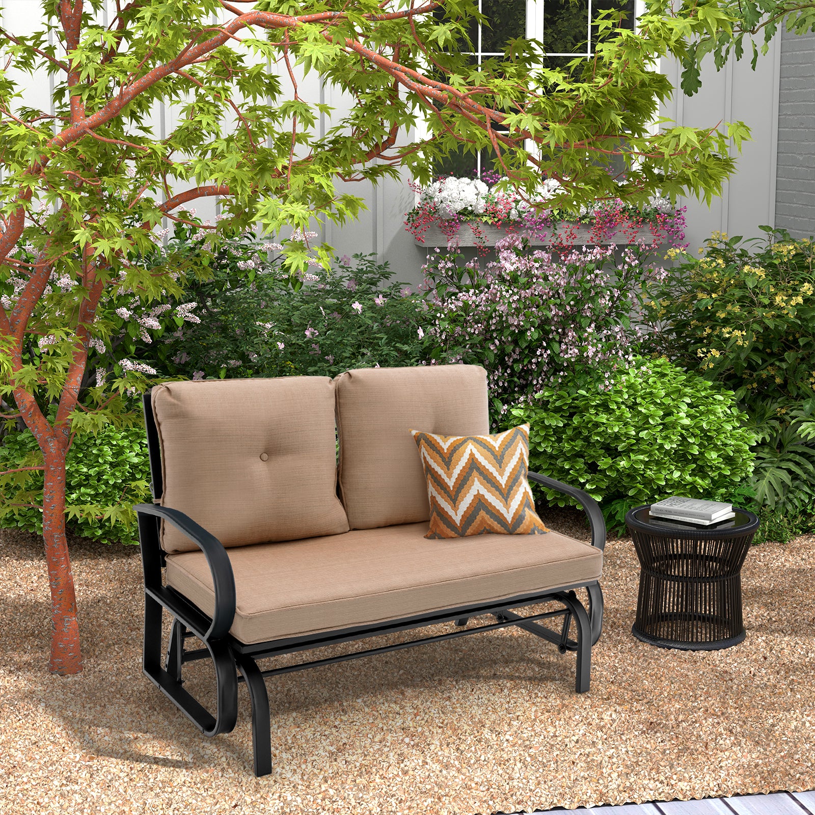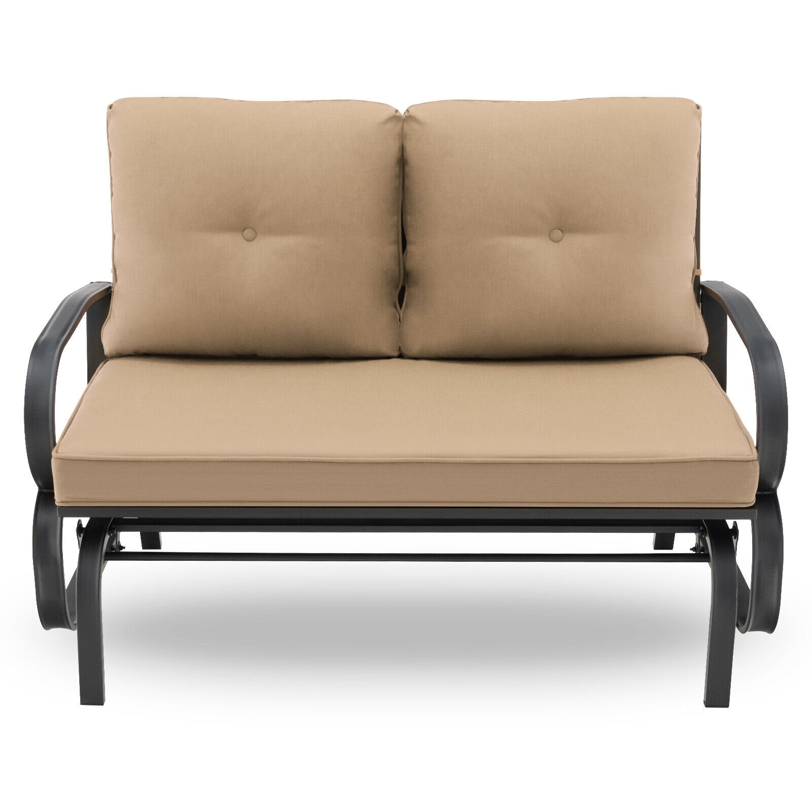 Patio 2-Person Glider Bench Rocking Loveseat Cushioned Armrest-Beige