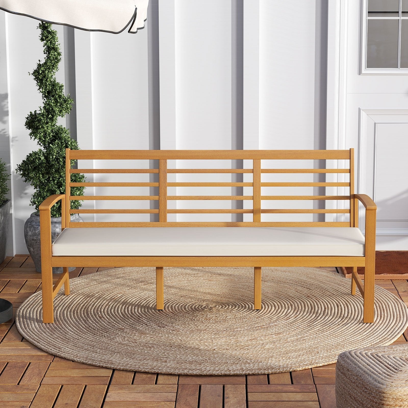 Patio 64 Inch Wood Bench with Seat Cushion and Slatted Seat for Backyard-Off White