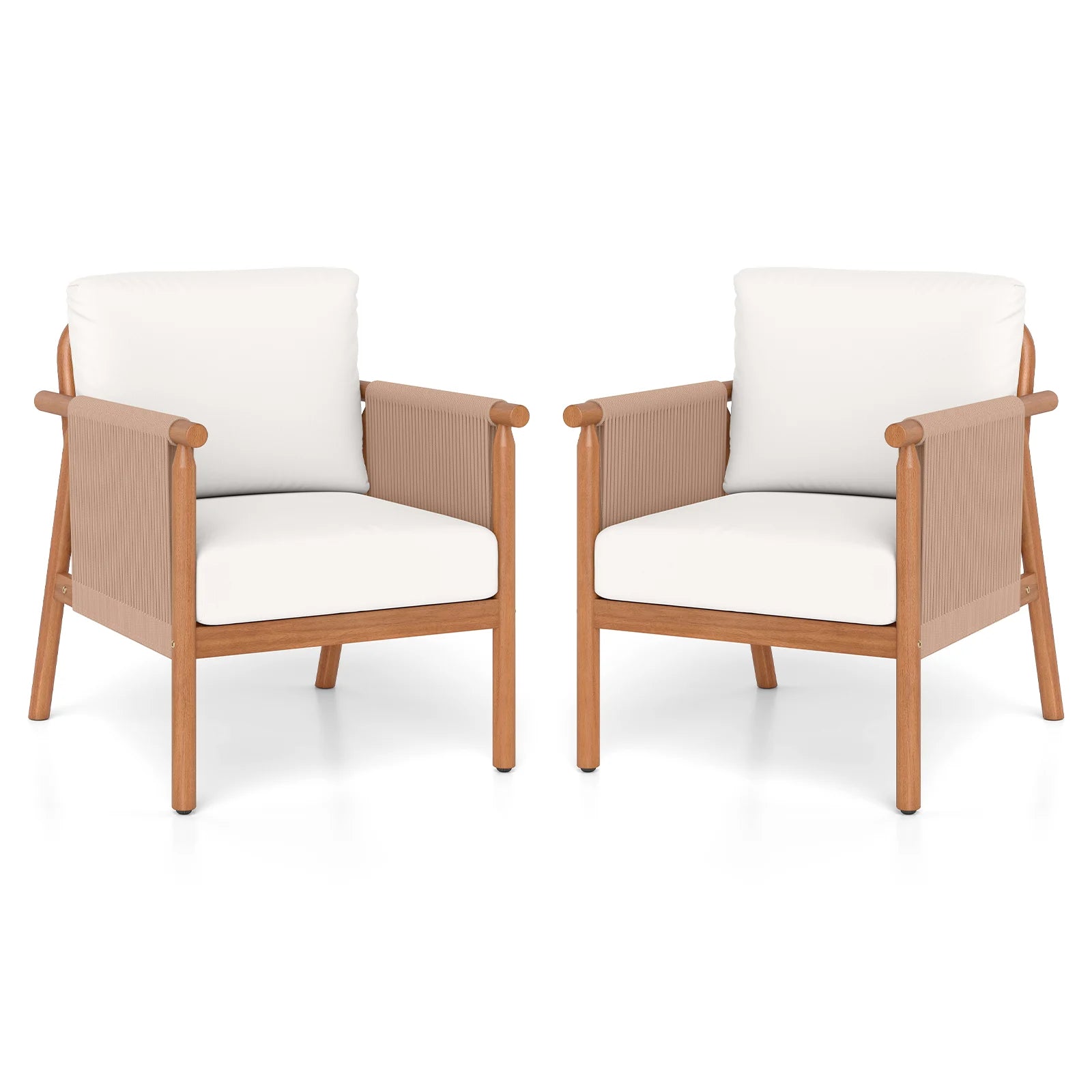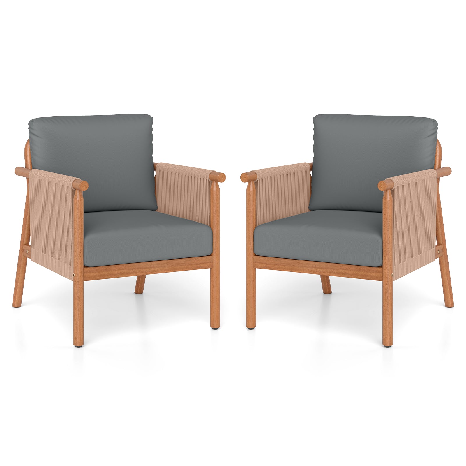 Patio Acacia Wood Chair Set of 2 with Woven Rope Armrests and Seat Back Cushions for Backyard-Gray