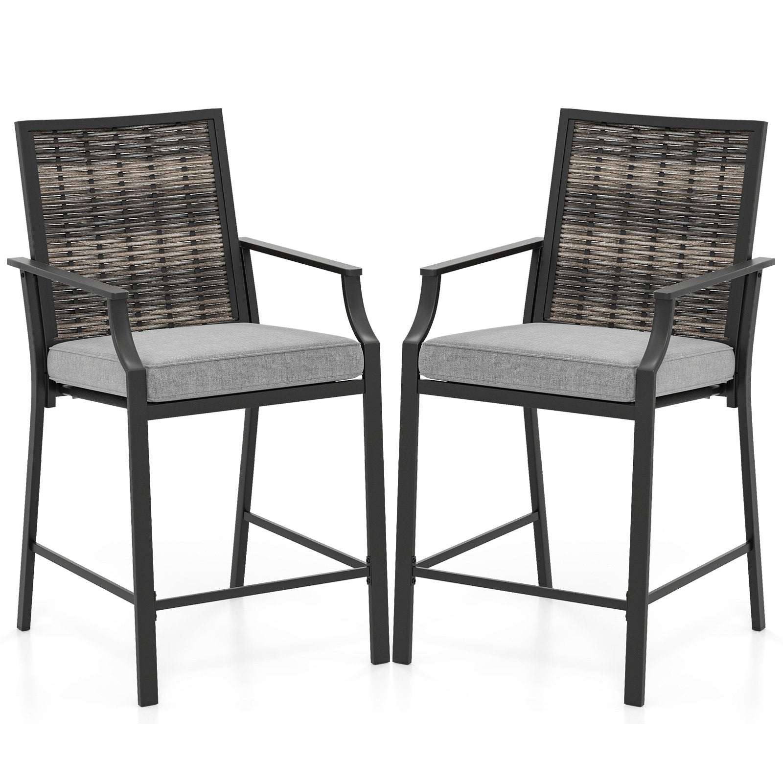 Patio Bar Stools Set of 2 Counter Height Rattan Bar Chairs with Armrest-Grey