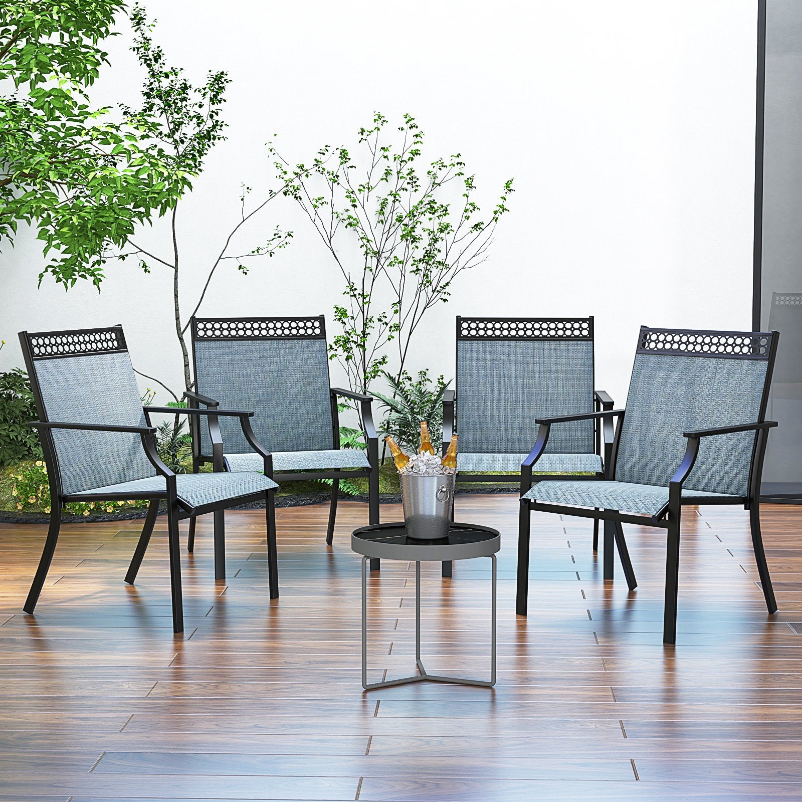 Patio Chairs Set of 2 with All Weather Breathable Fabric-Blue