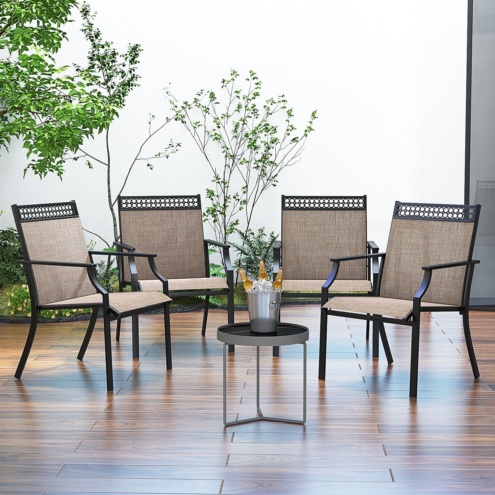 ● Wide Application: Combining mixed colors fabric and elegant hollow design on the backrest this patio chair features an elegant and modern appearance. It can be a perfect addition to various outdoor occassions such as poolside garden or patio. (Brown)