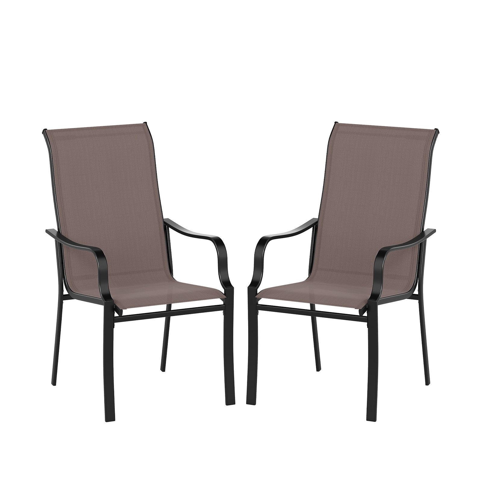 Patio Dining Chair Set of 2 with Wide Seat and Heavy-Duty Metal Frame-Brown