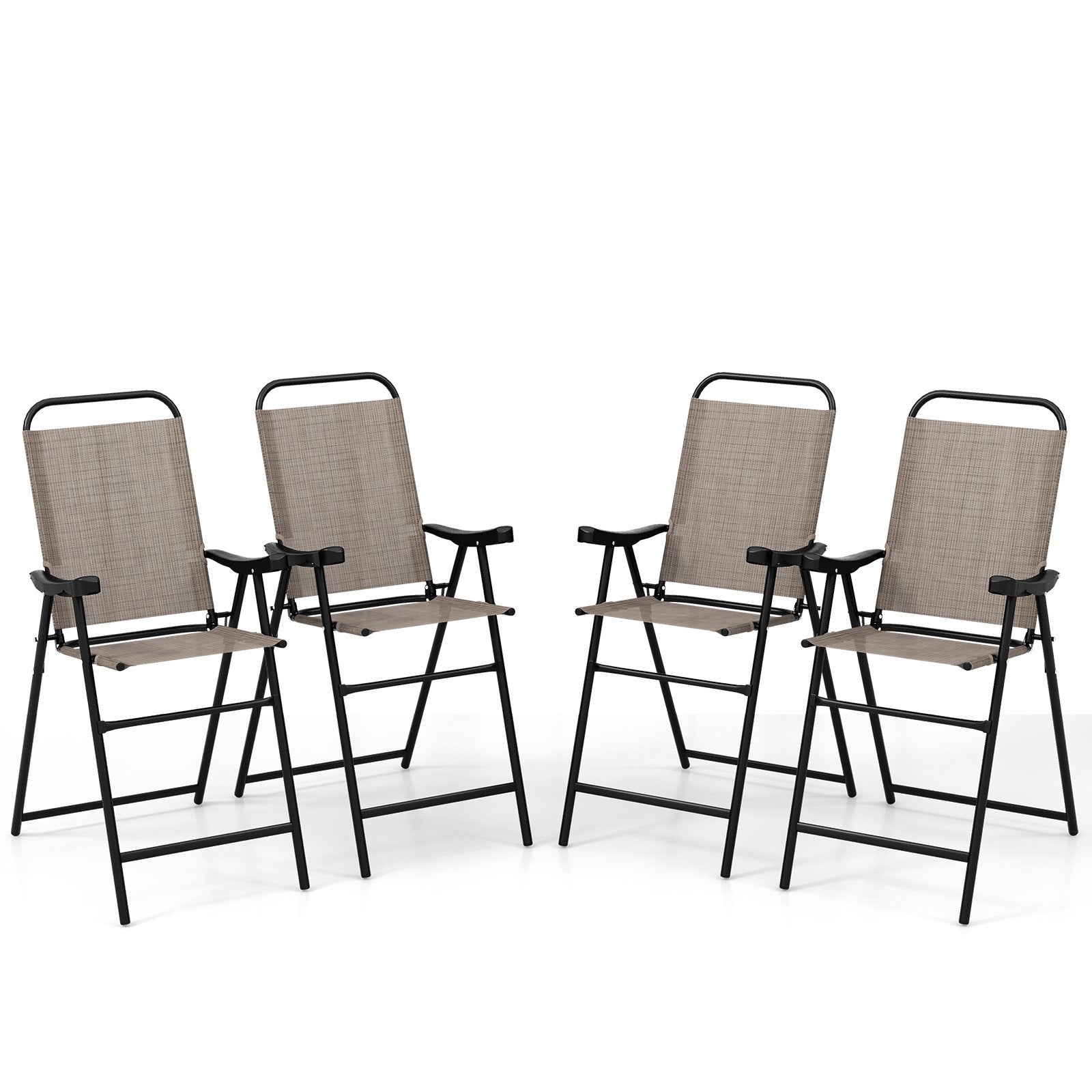 Patio Folding Bar Stool Set of 4 with Metal Frame and Footrest-Blue