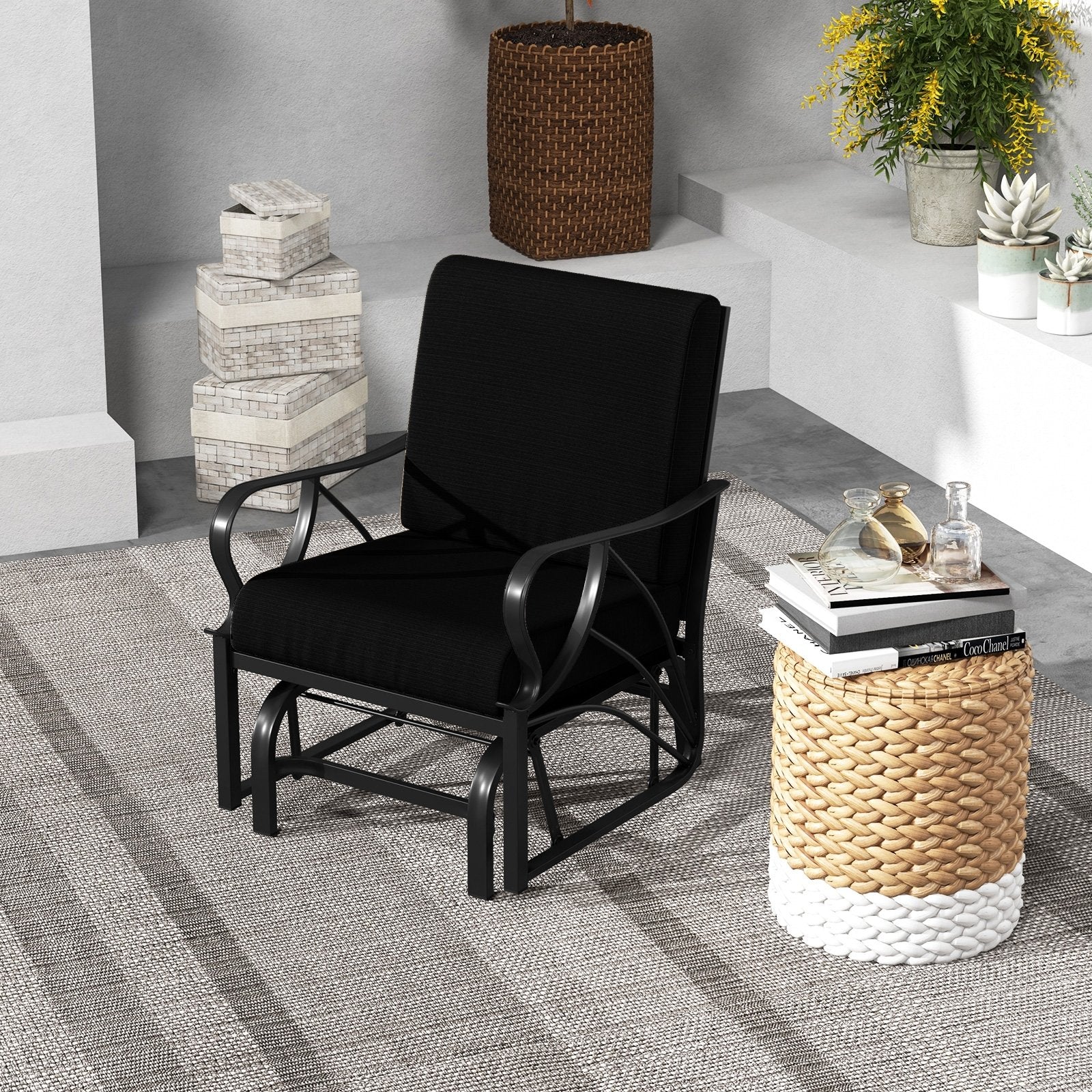 Patio Glider Rocking Chair with Thick Cushion and Curved Armrest-Black